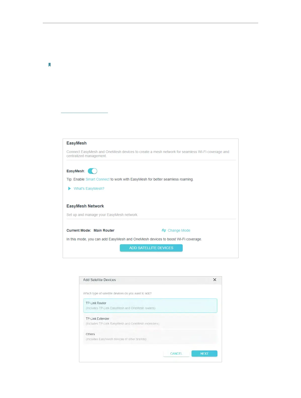 3. Click ADD SATELLITE DEVICES, select TP-Link Router, then click NEXT.