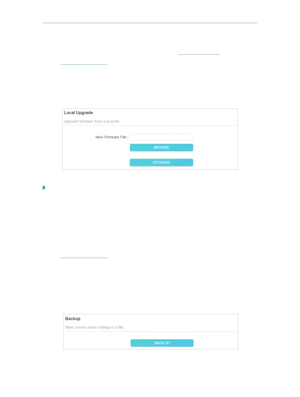 Click BACK UP to save a copy of the current settings to your local computer. A ‘.bin’ file