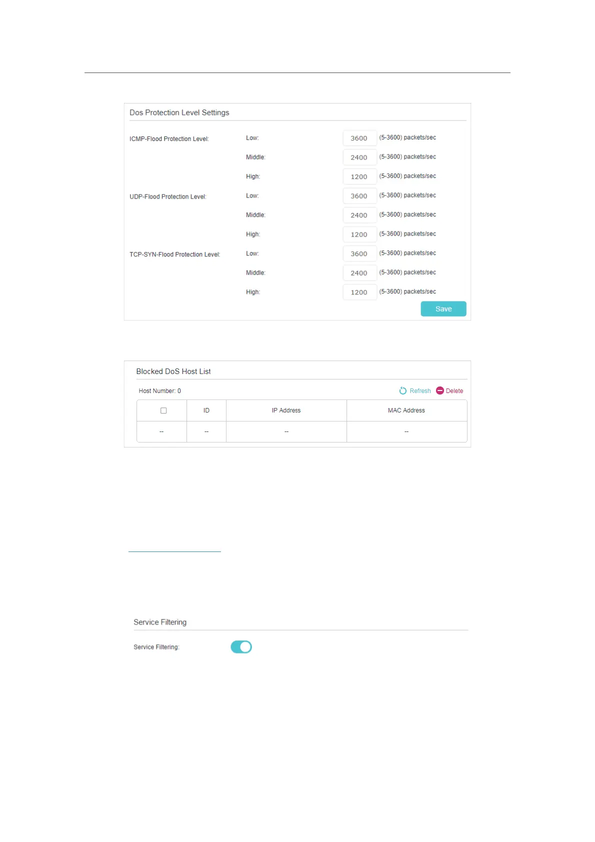 2. The protection will be triggered immediately when the number of packets exceeds the preset threshold value, and