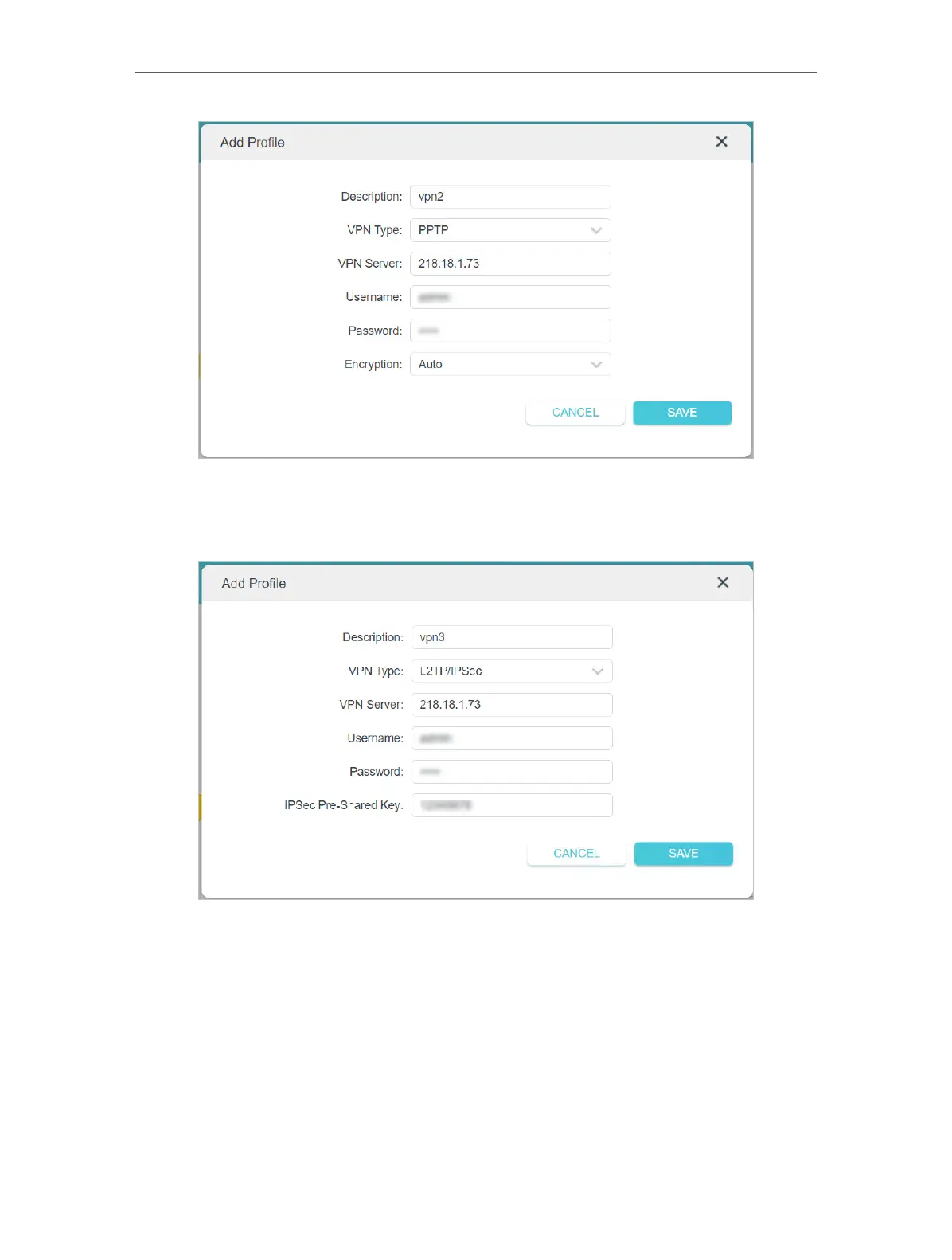 L2TP/IPSec VPN: Enter the VPN server address (for example: 218.18.1.73),