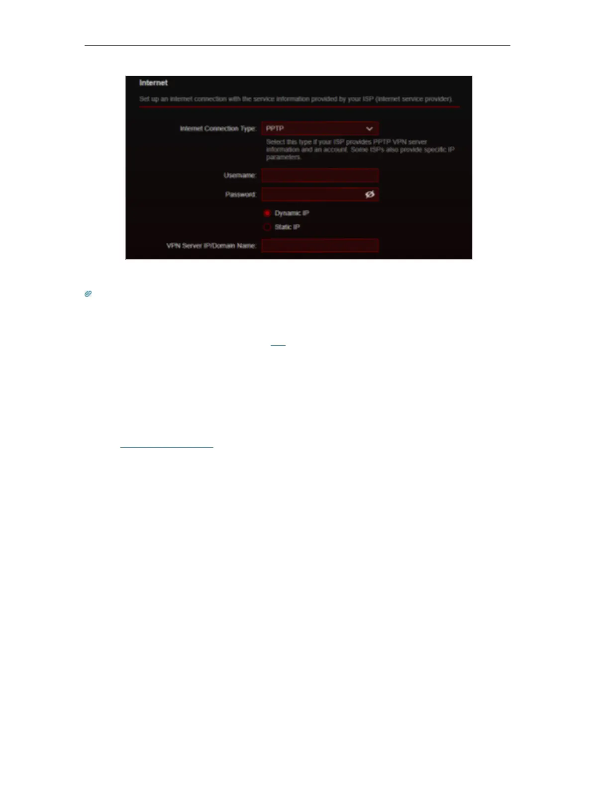 • If you use Dynamic IP and PPPoE and you are provided with any other parameters that are not required on the page,