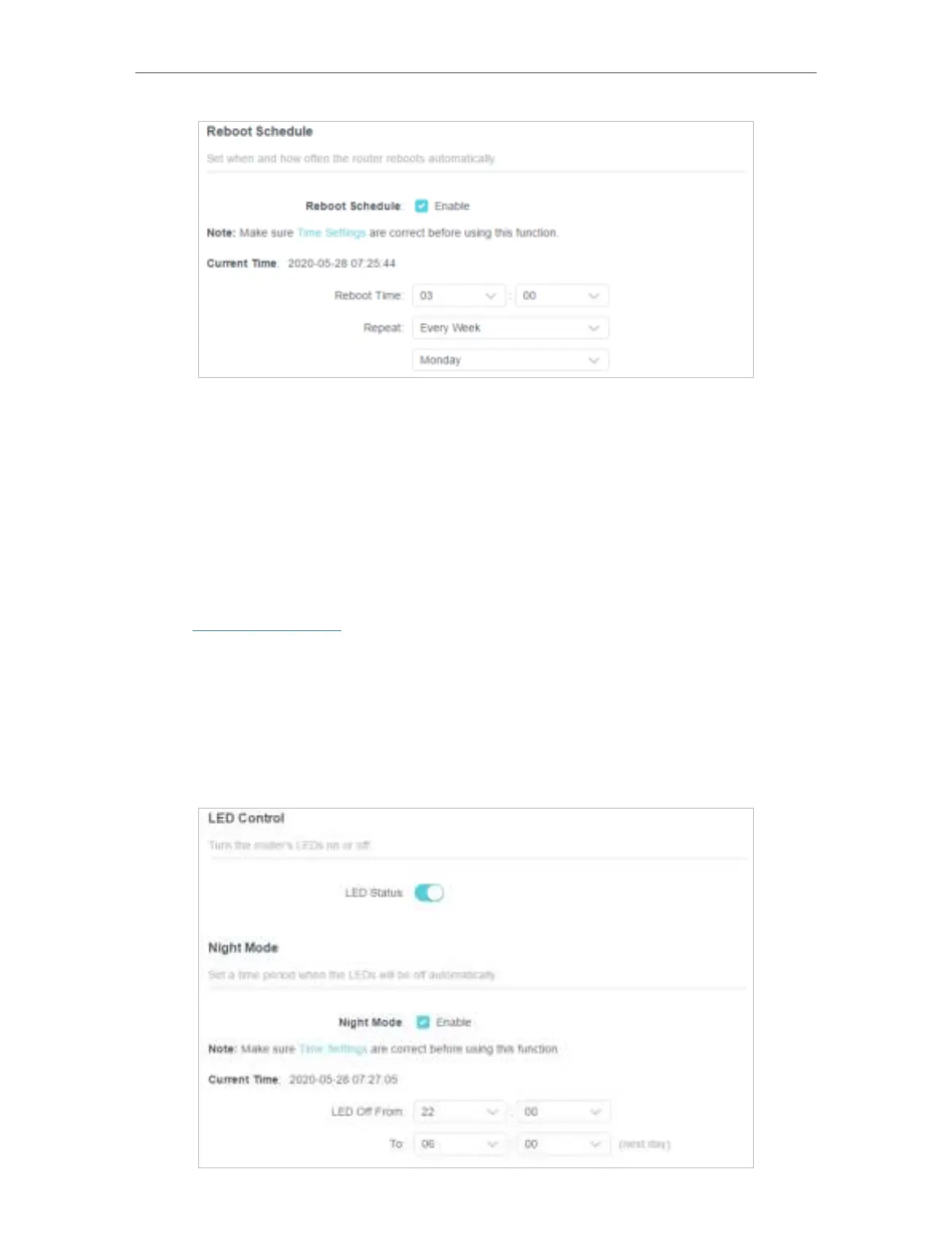 4. Specify the Reboot Time when the router reboots and Repeat to decide how often it