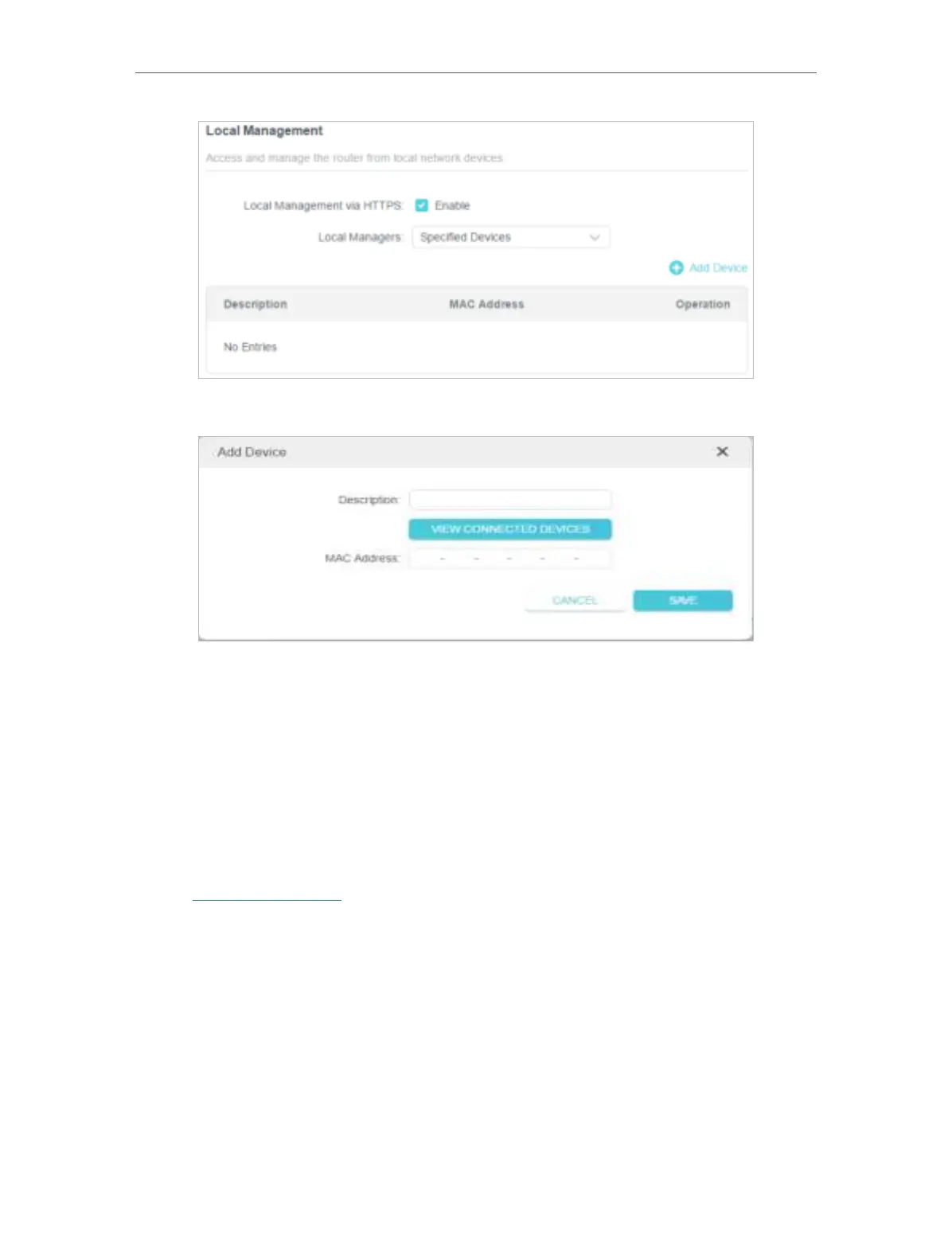 This feature allows you to control remote devices’ authority to manage the router.