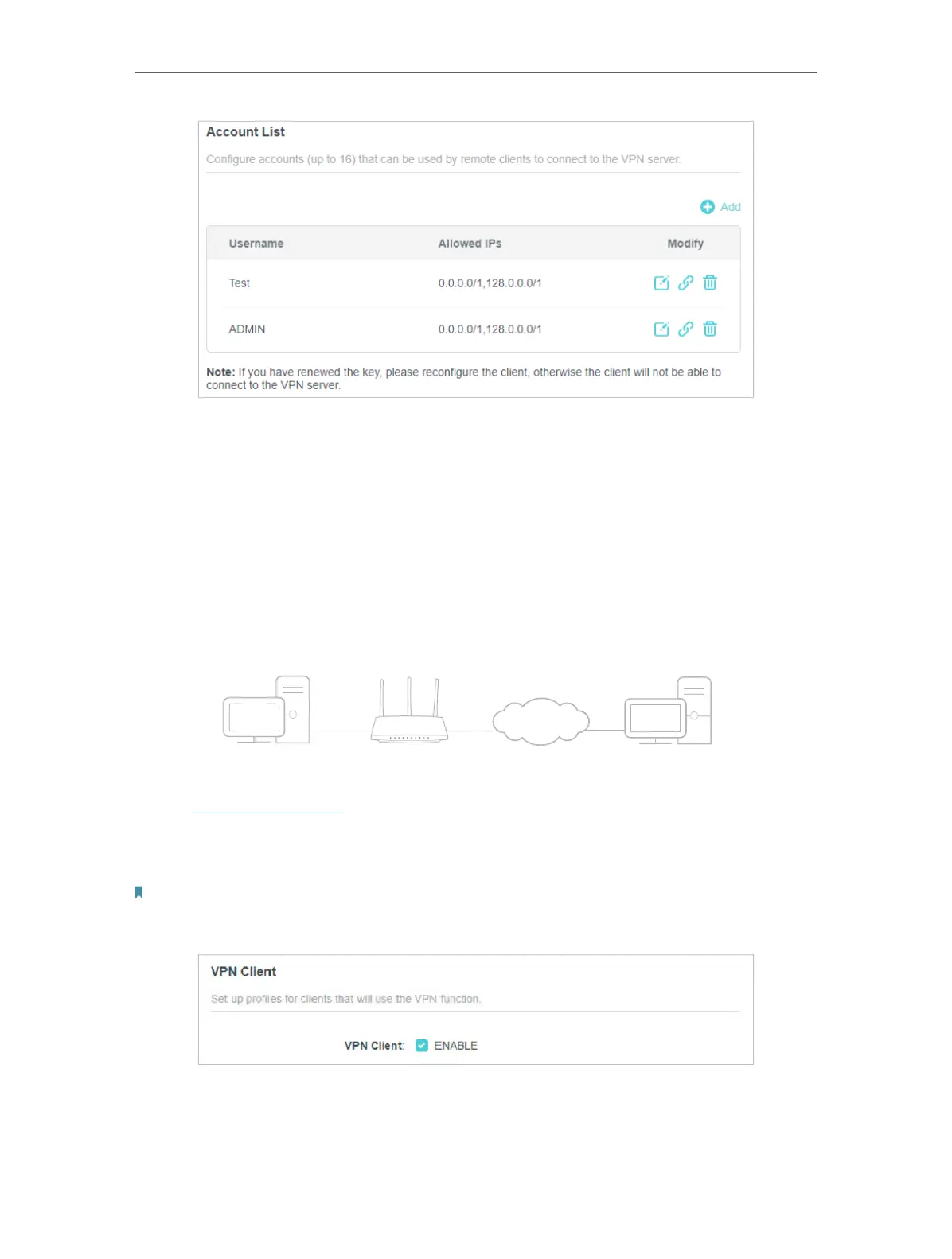 Note: Firmware update may be required to support VPN Client.