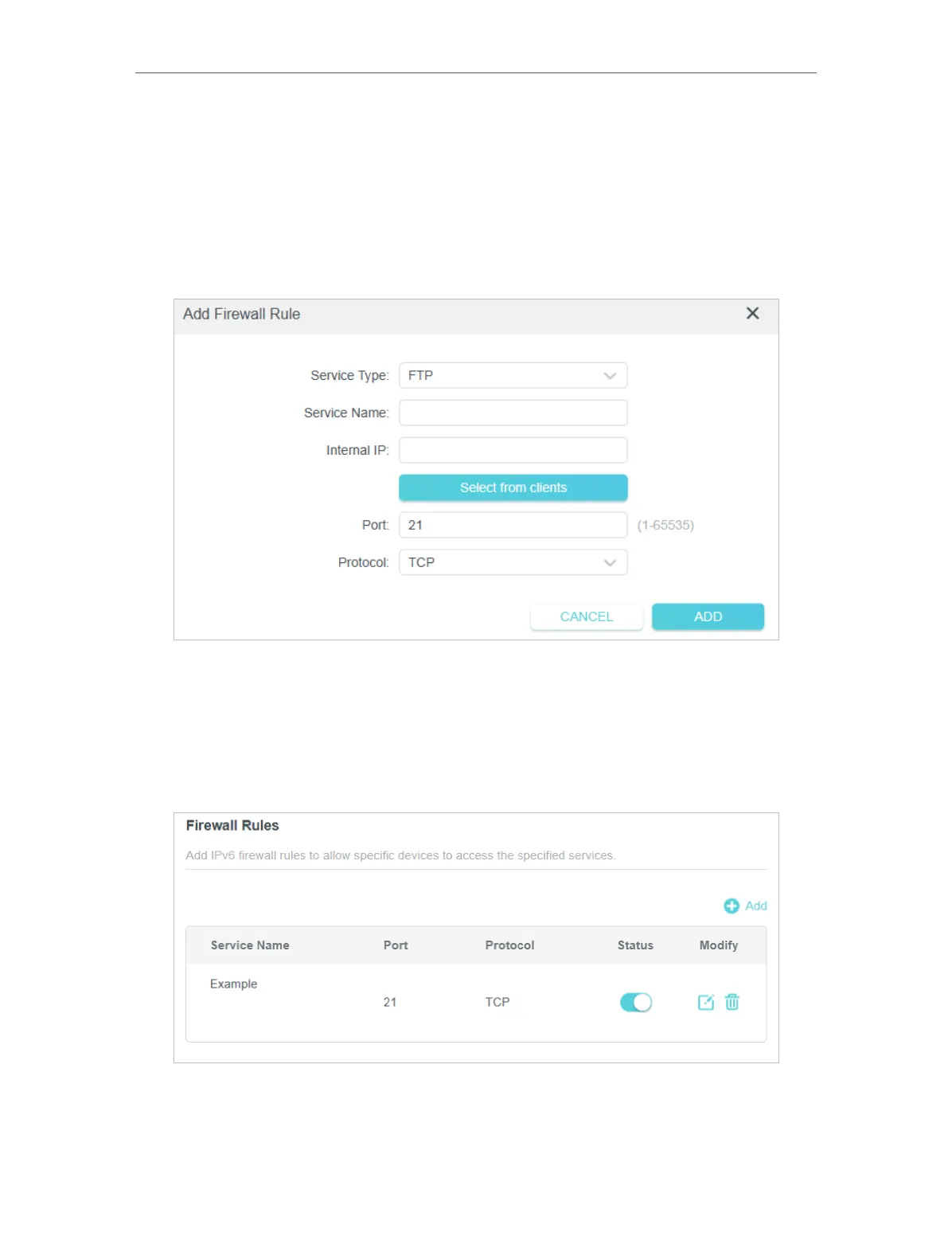 2. Go to Advanced > IPv6, and locate the Firewall Rules section.