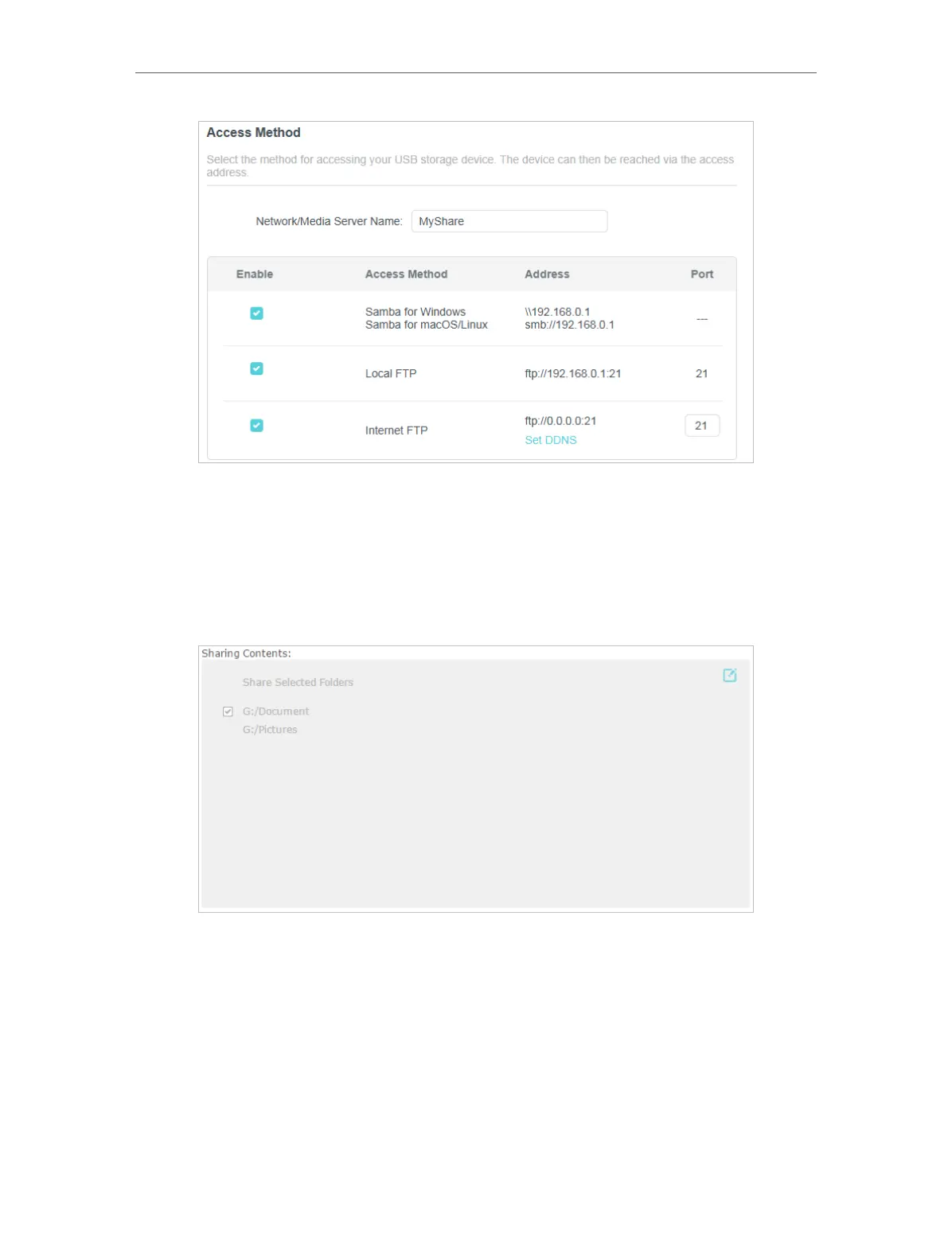 Focus on the File Sharing section. Specify sharing folders that you want to share and
