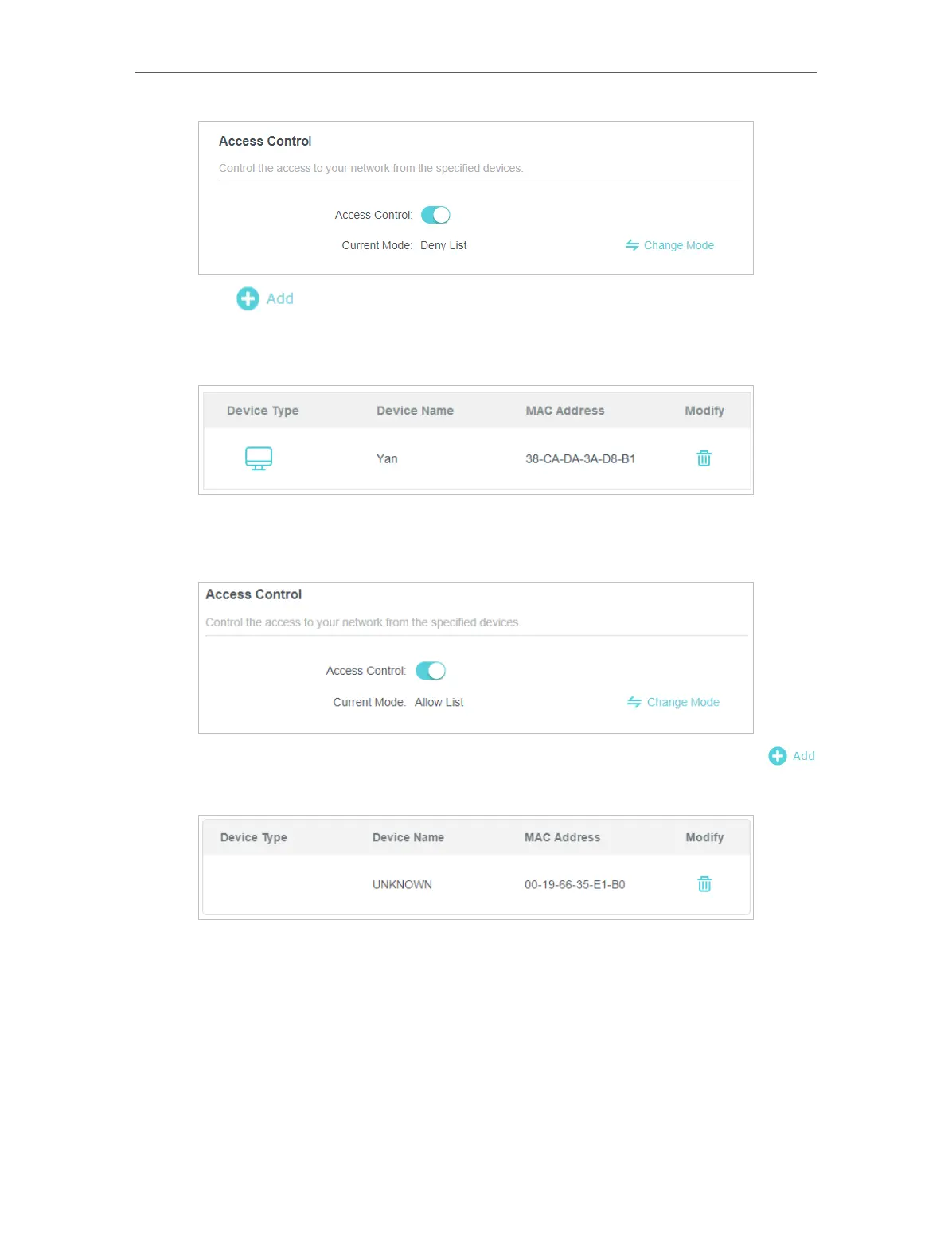 2 ) Your own device is in the allow list by default and cannot be deleted. Click