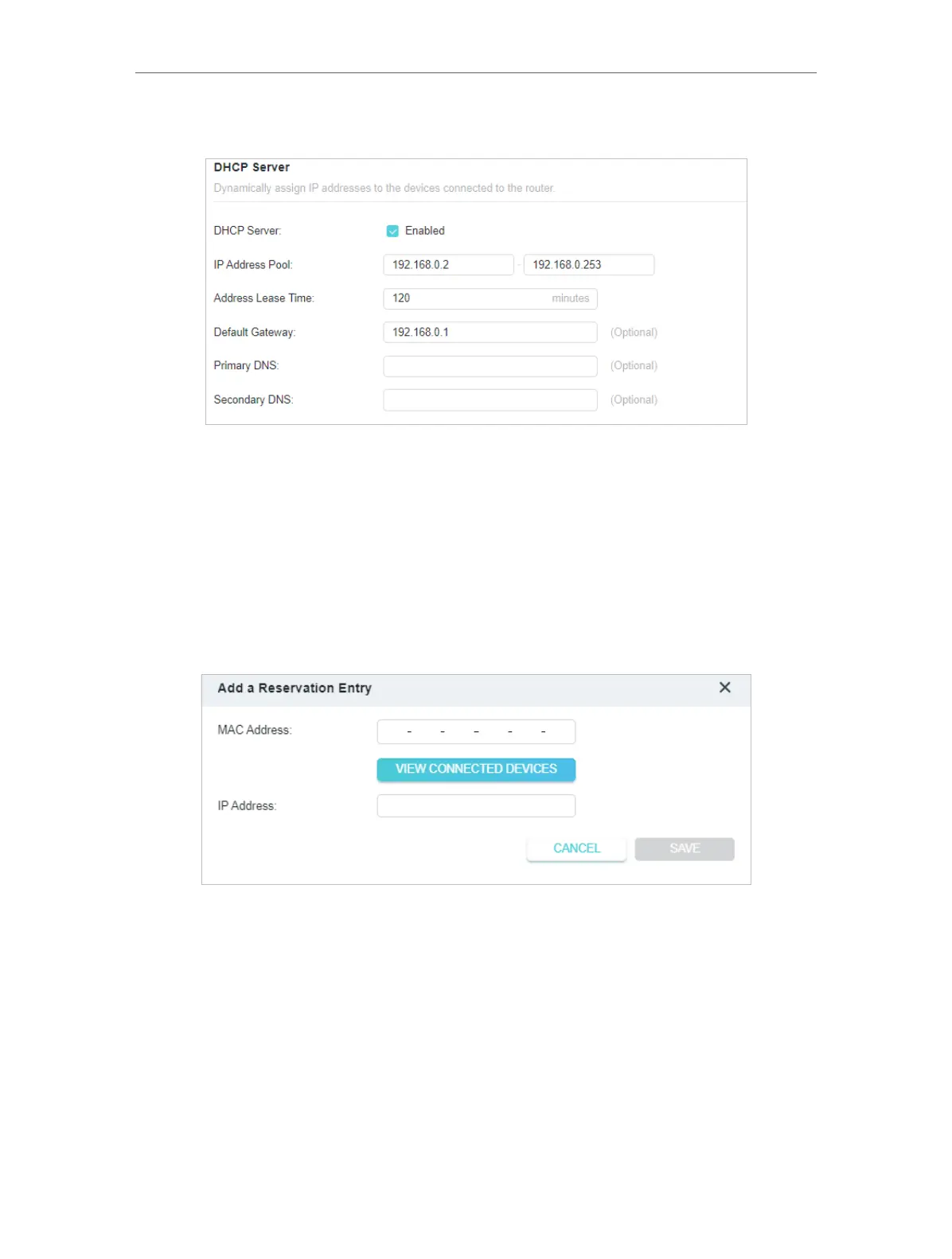 1. Click Add in the Address Reservation section.