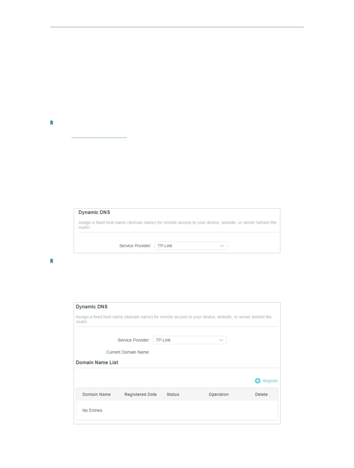 4. Click Register in the Domain Name List if you have selected TP-Link, and enter the
