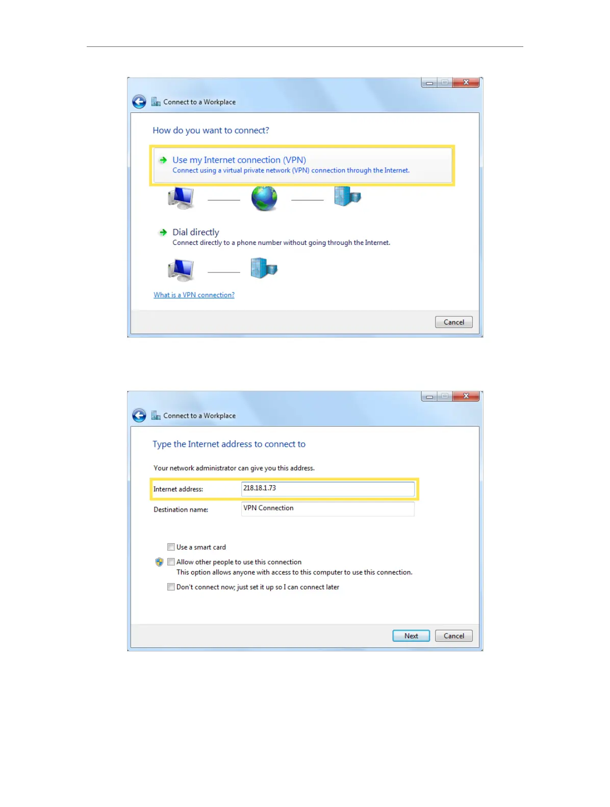 5. Enter the internet IP address of the router (for example: 218.18.1.73) in the Internet