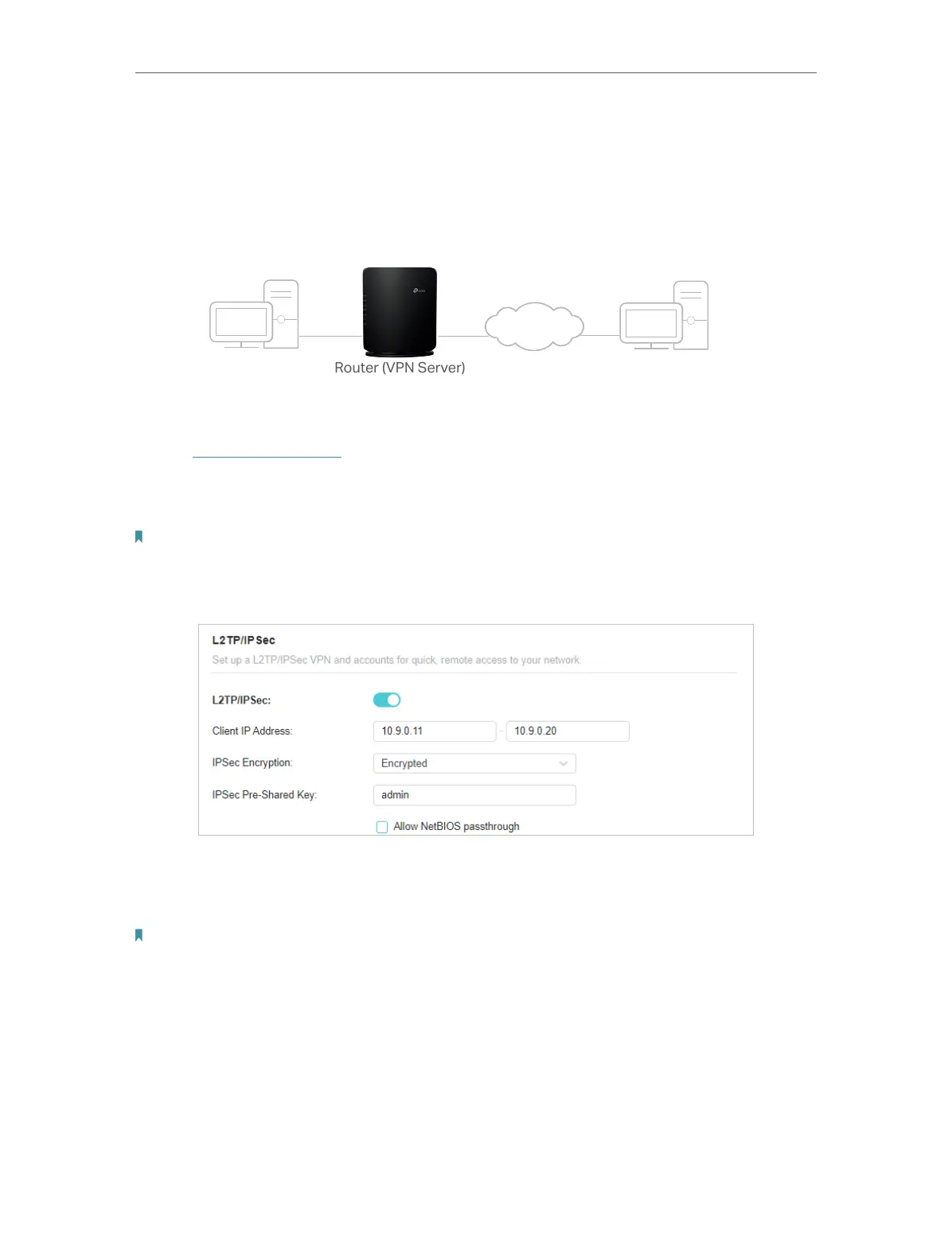 Note: Enable NetBIOS Passthrough function to allow NetBIOS packets to be broadcasted through VPN tunnel.