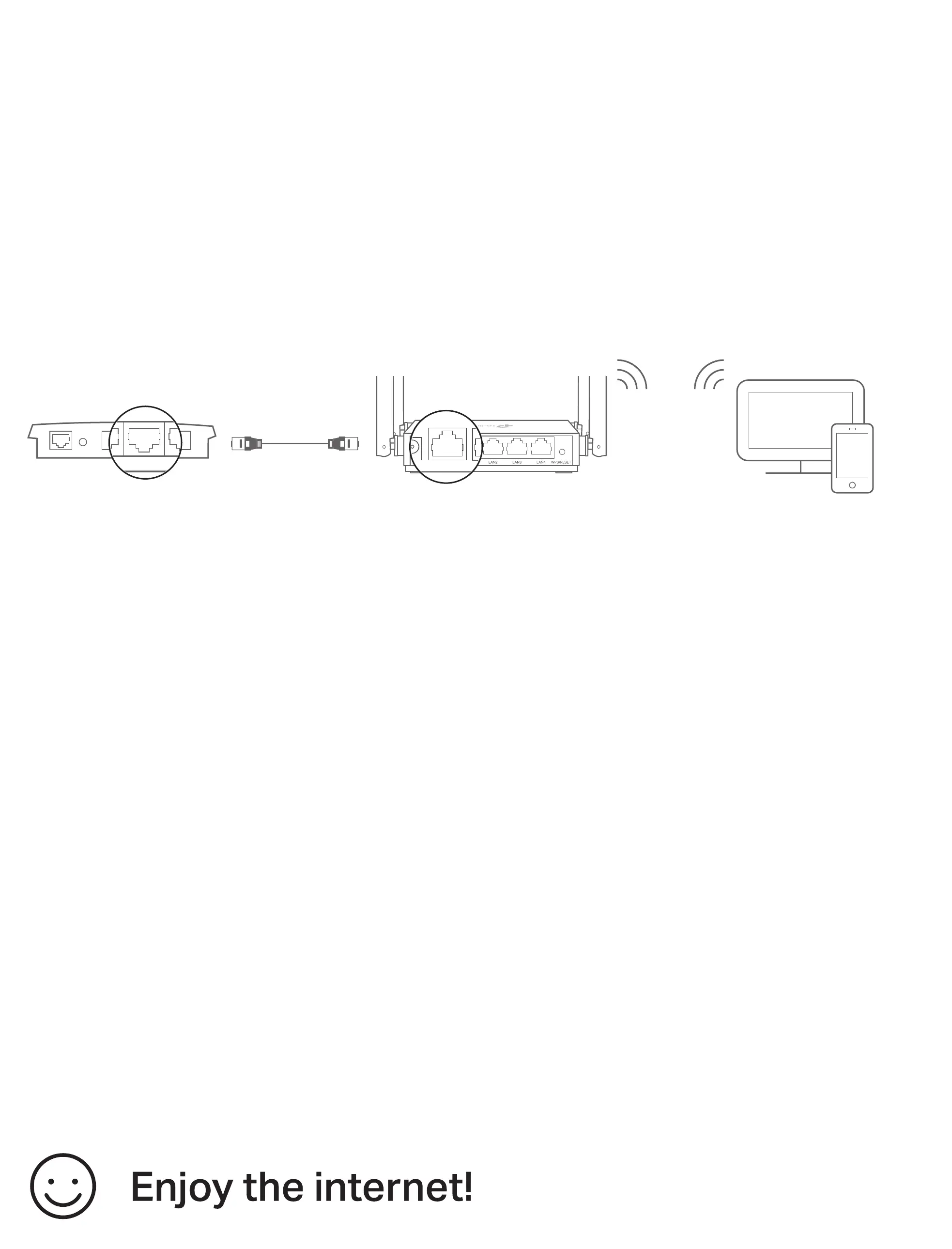 b. Connect the router's WAN port to your wired router’s Ethernet port via