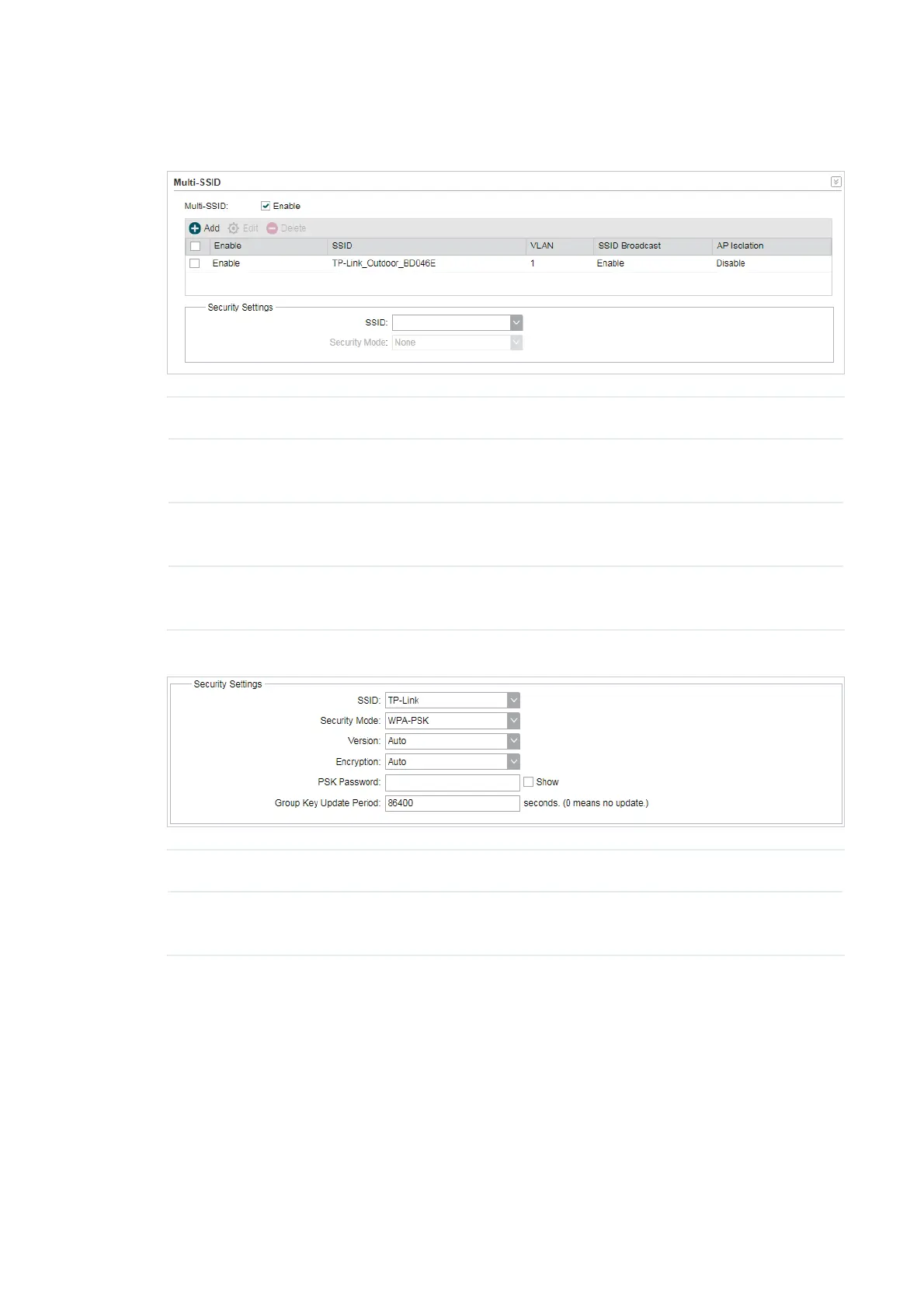 SSID Select the desired SSID to specify the security settings.