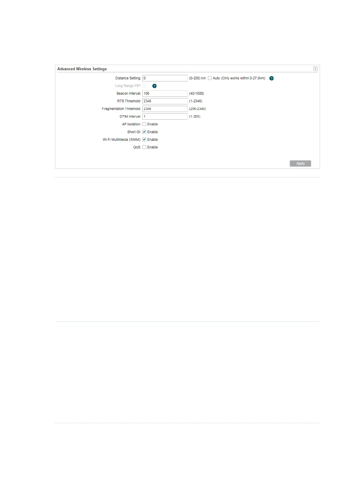 Specify the distance between AP and Station. If this device serves as a
