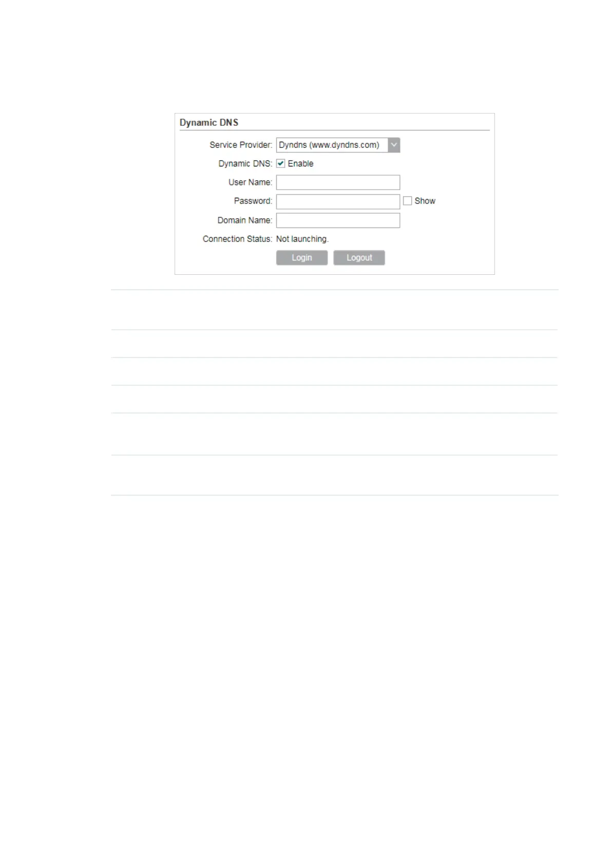 Dynamic DNS Enable or disable the Dynamic DNS feature.