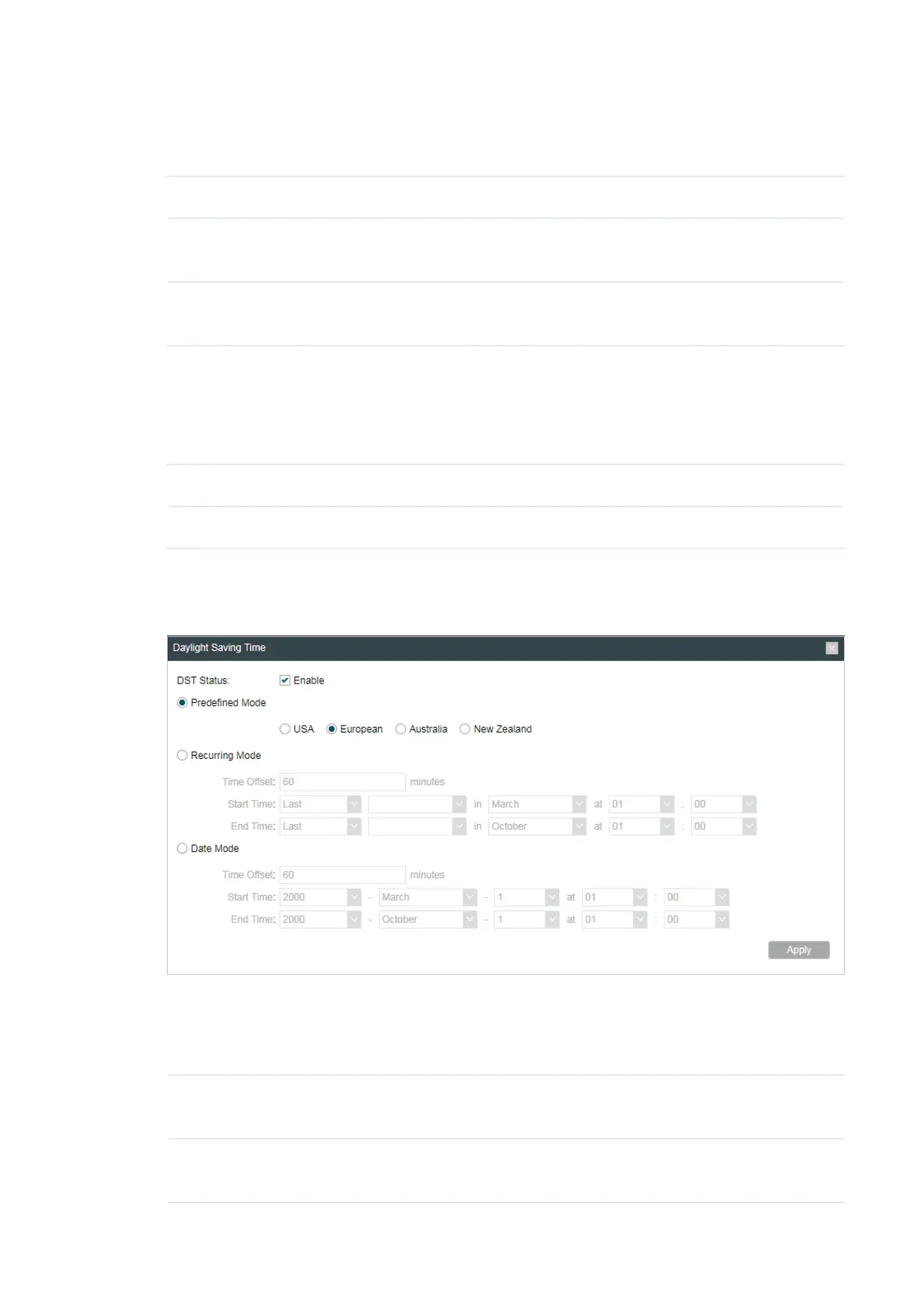 Select Predefined Mode and select the predefined daylight saving time schedule for the device.