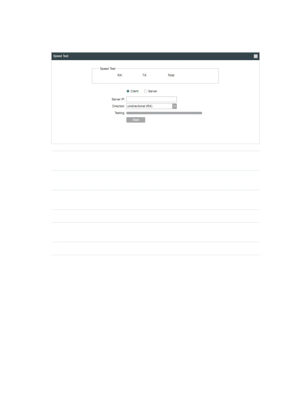 Direction Select the direction of the speed test including unidirectional (RX),