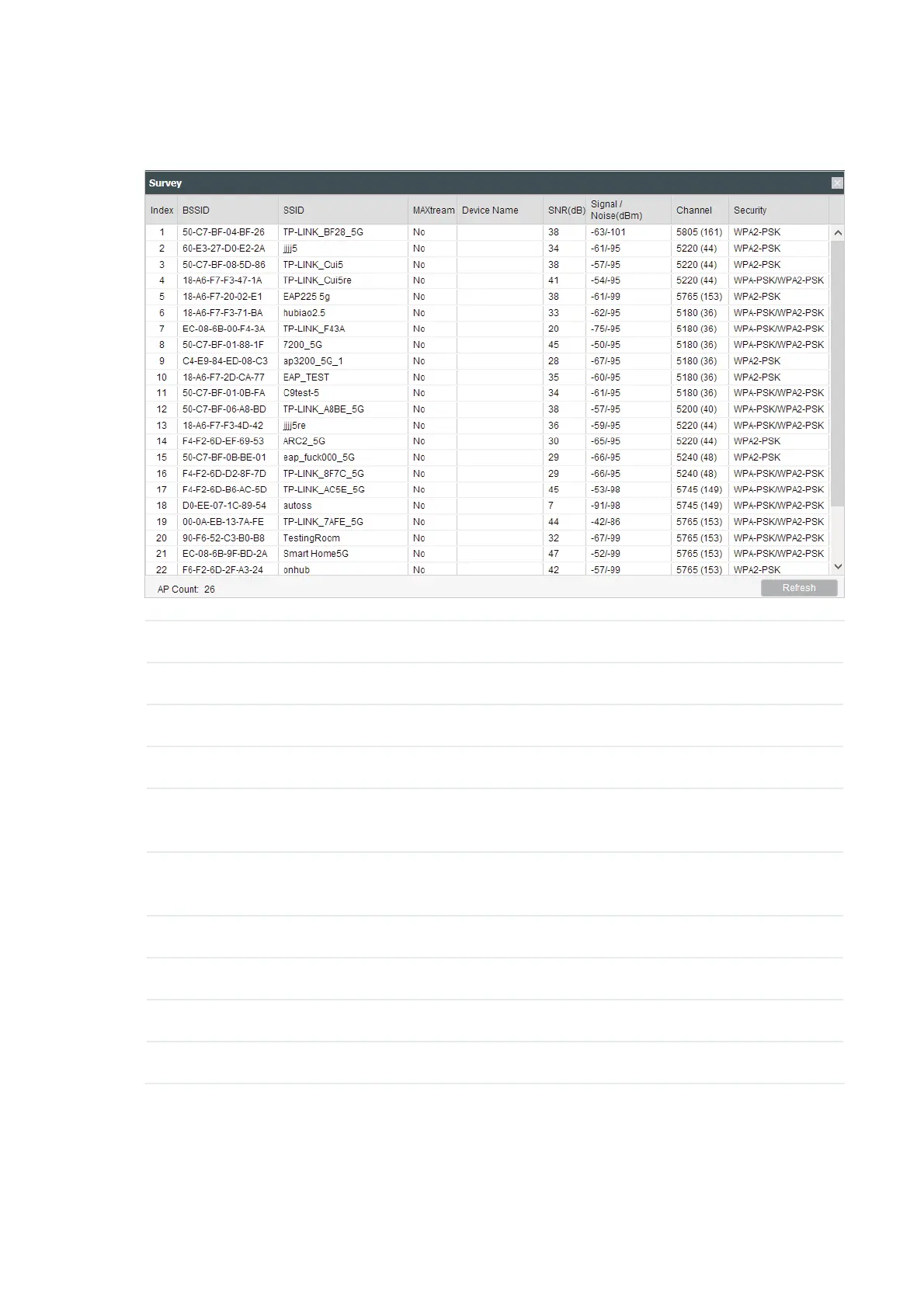 SNR(dB) Displays the Signal Noise Ratio (Unit: dB) of other APs surveyed by this