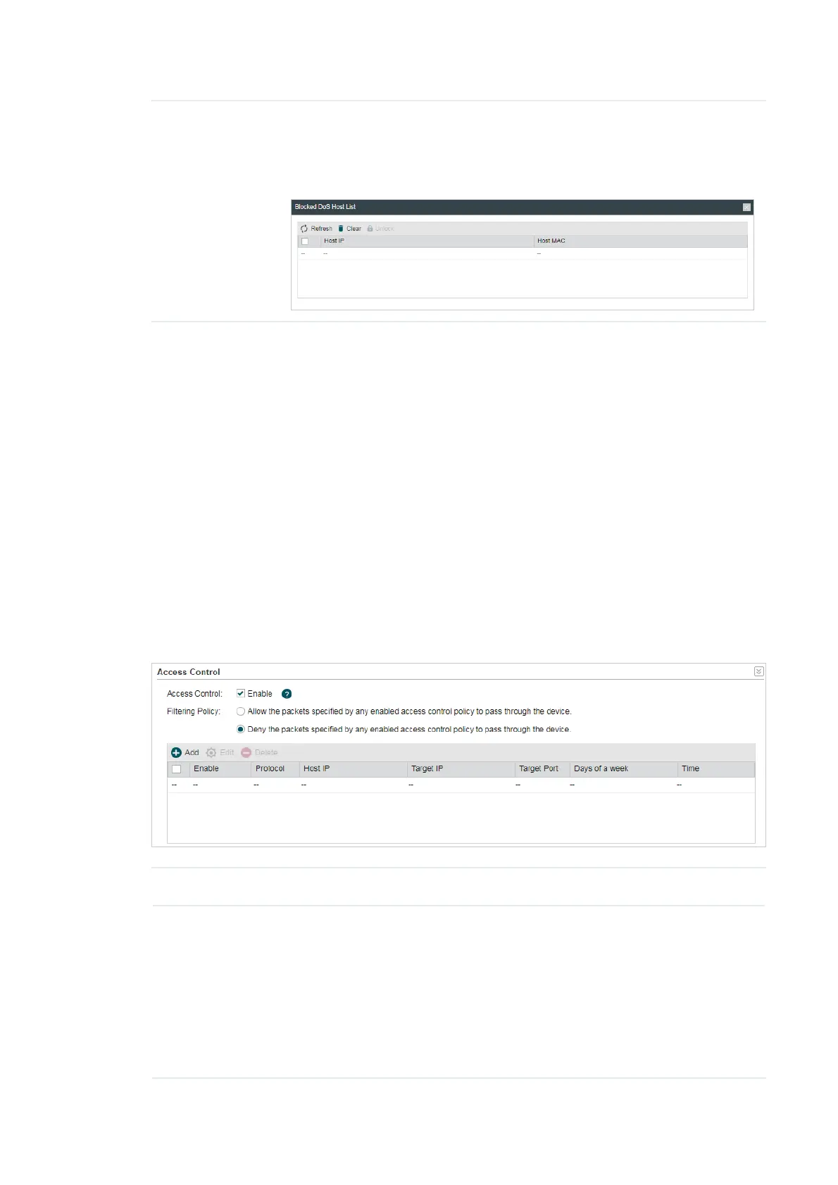 Filtering Policy Select the filtering policy according to your need.