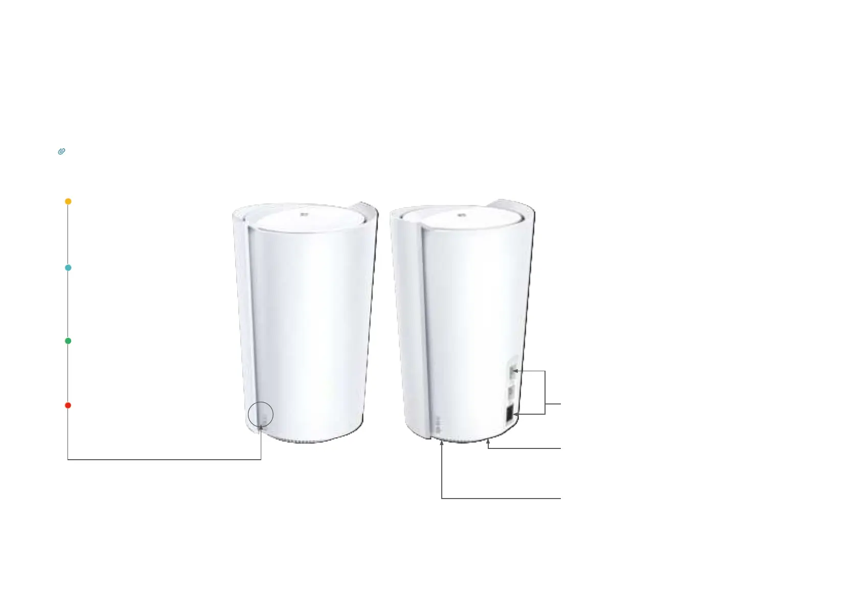 Each Deco has an LED that changes color according to its status, three RJ-45 Ethernet ports, a power slot, and a Reset button.