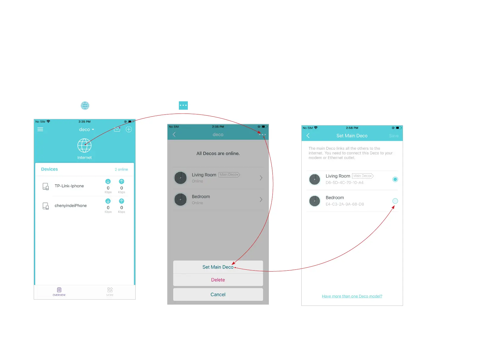 After setup, you can replace the main Deco with any satellite Deco when needed. Follow the steps below.
