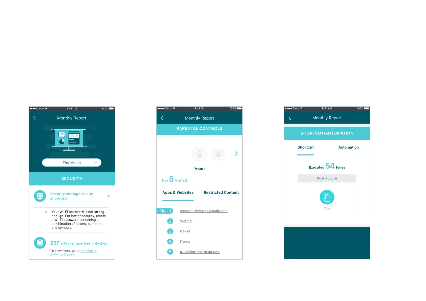 Safeguard your Deco network Top 5 visited contents under Parental Controls Most frequently executed shortcuts and