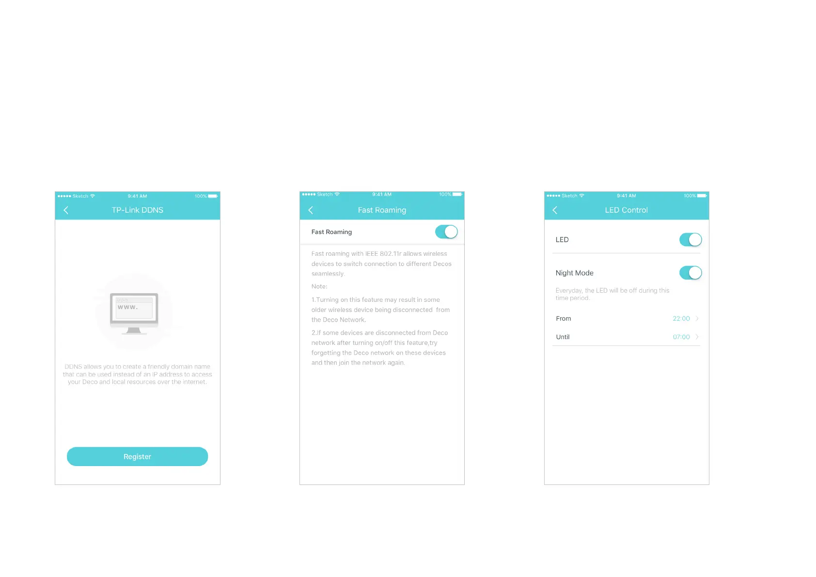 Control the LED on DecoEnable fast roaming for wireless devicesRegister a TP-Link DDNS domain name
