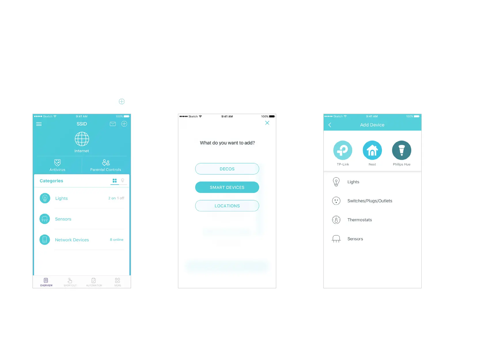 reach of your lights, thermostats, switches and plugs. Follow the steps below to add smart home devices to your Deco network.