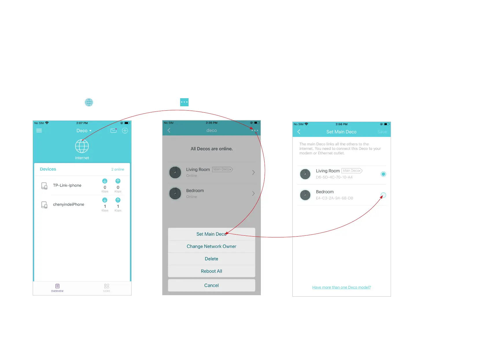 After setup, you can replace the main Deco with any satellite Deco without resetting and reconfigure the whole network.