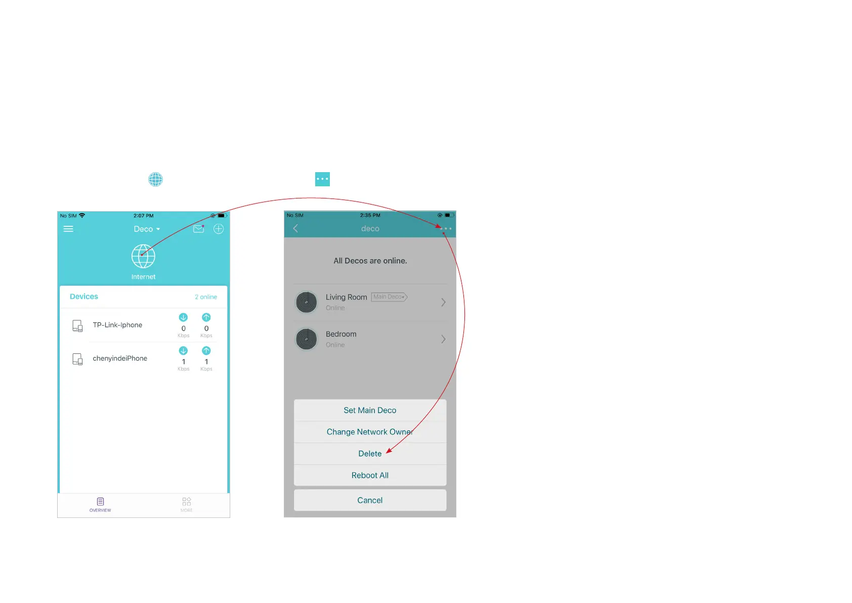 You can delete a Deco network if you don't need it anymore. Deleting a Deco network will reset all Decos in this network to factory default settings.