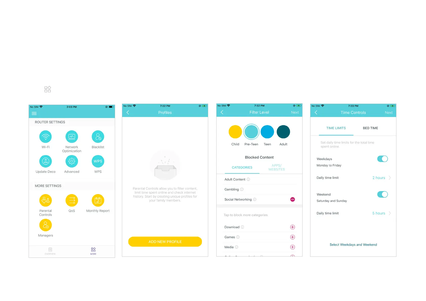 Parental Controls allows you to filter content, limit time spent online and check internet history. Start by creating unique profiles for your family
