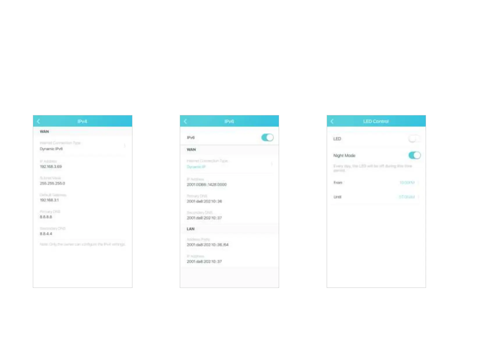 Additional features are available under the Advanced menu. You can modify WAN settings (IPv4 & IPv6), control Deco's LED, turn notications o and