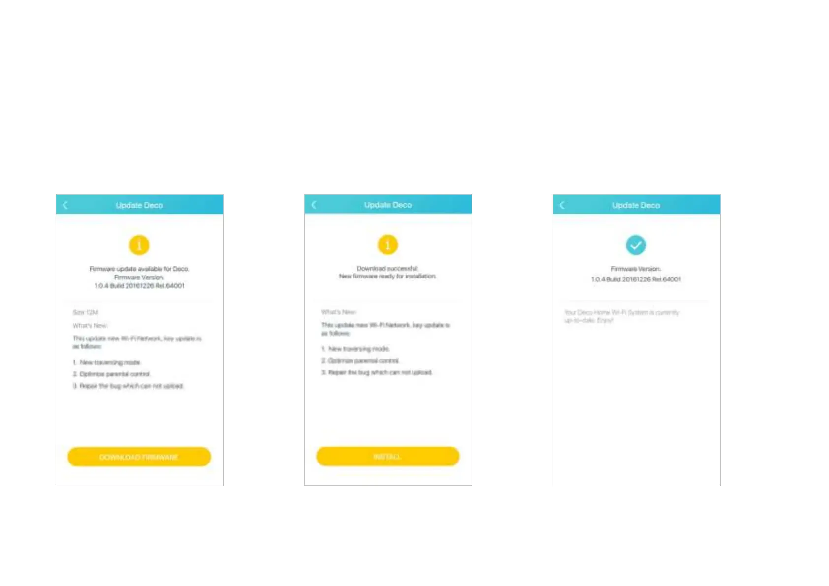 TP-Link is dedicated to improving product features and providing a better customer experience. Update Deco when prompted in the Deco app.