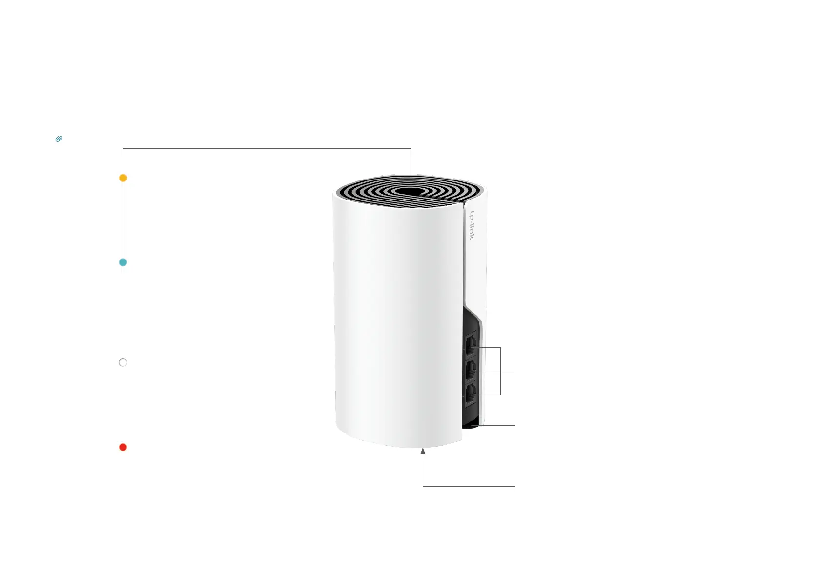 Each Deco has an LED that changes color according to its status, three RJ-45 Ethernet ports, a power slot, and a Reset button. See the explanation