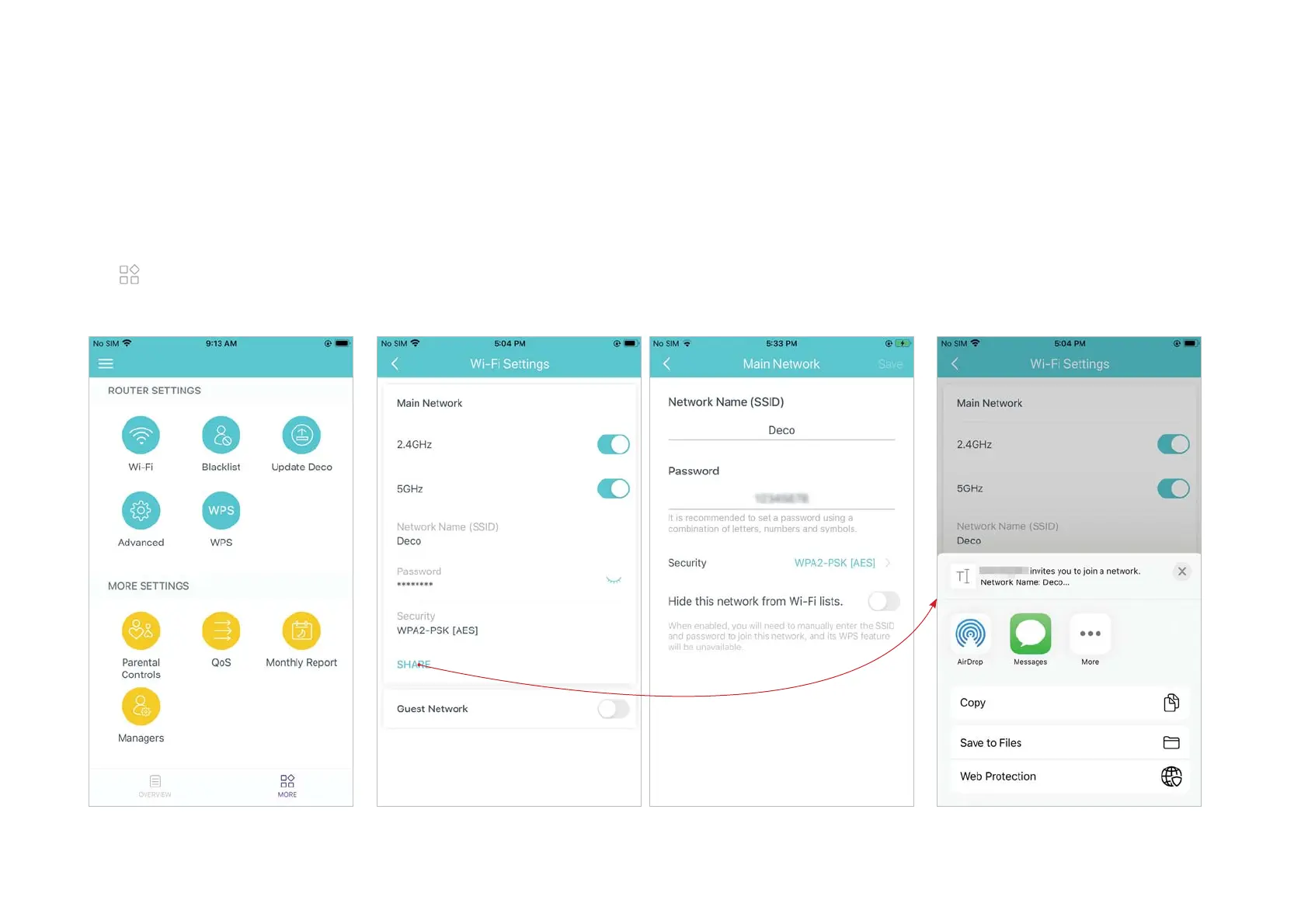 TP-Link Deco S7 - Wi-Fi Settings; Manage Main Network; Share Network