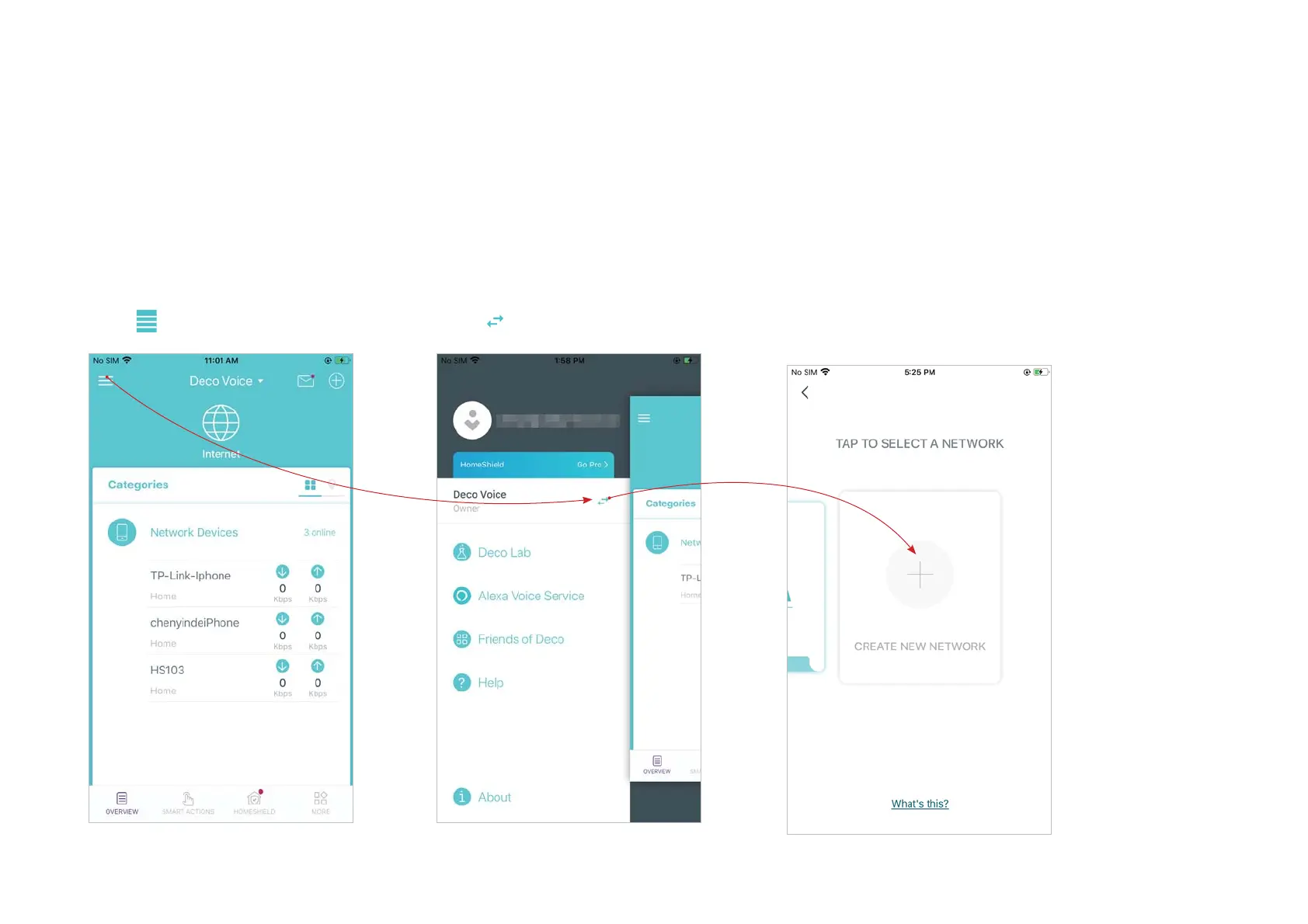 account. You can also help family or friends by managing their network on your Deco app. Two methods are provided as below to create a new network: