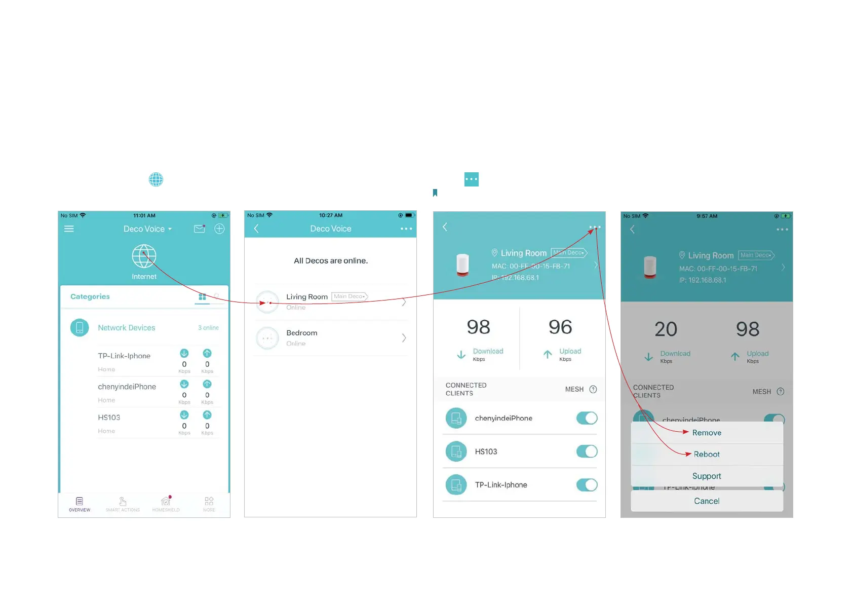 You can remove or reboot your Deco easily on the Deco app. Follow the steps below.