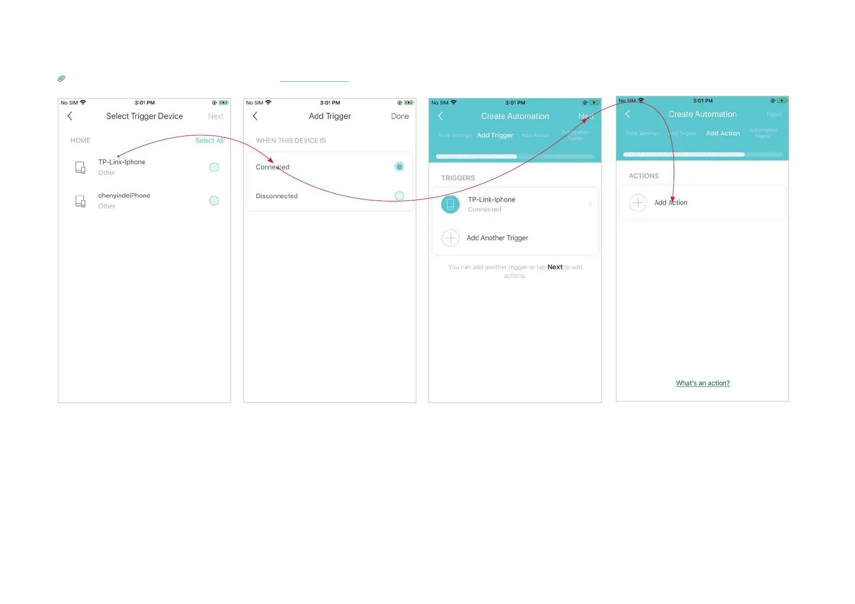 Tips: Before selecting the trigger and action devices, follow Add Smart DevicesWRDGGWKHPLQWRWKH'HFRQHWZRUNƮUVW