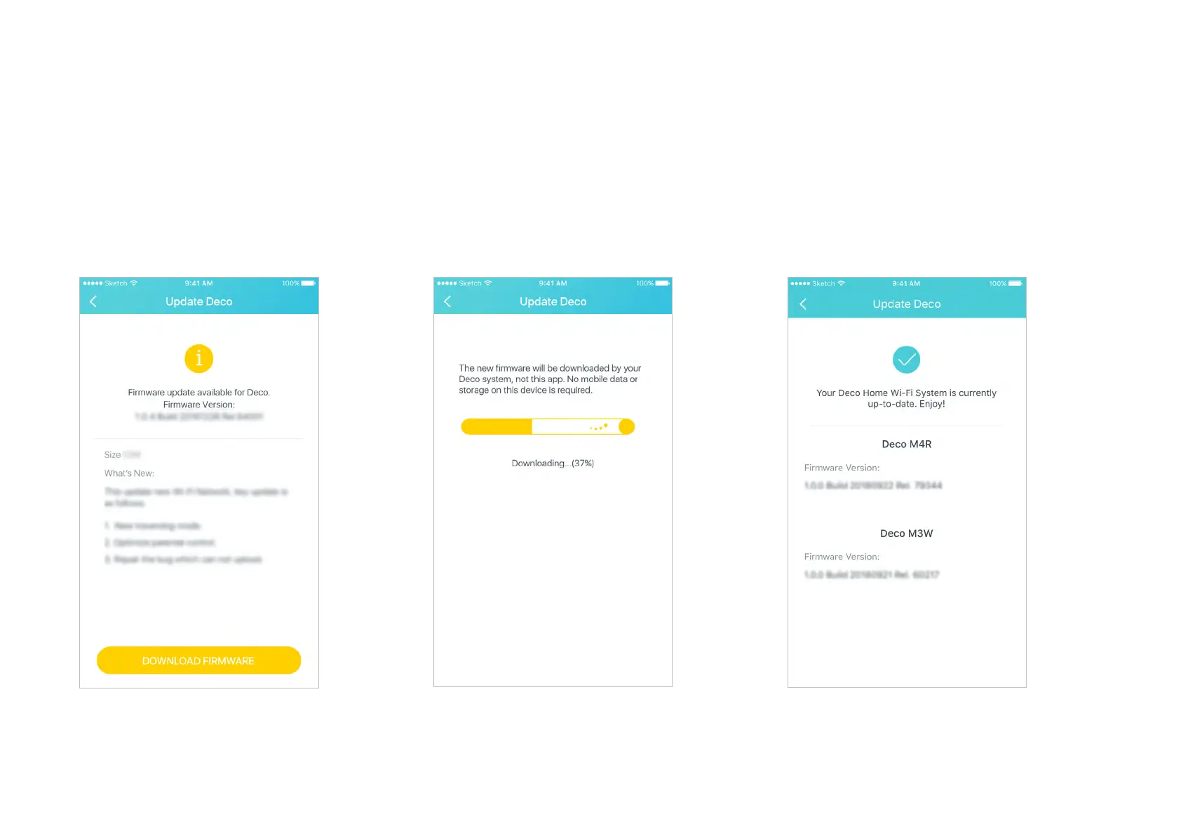TP-Link is dedicated to improving product features and providing a better customer experience. Update Deco when prompted in the Deco app.
