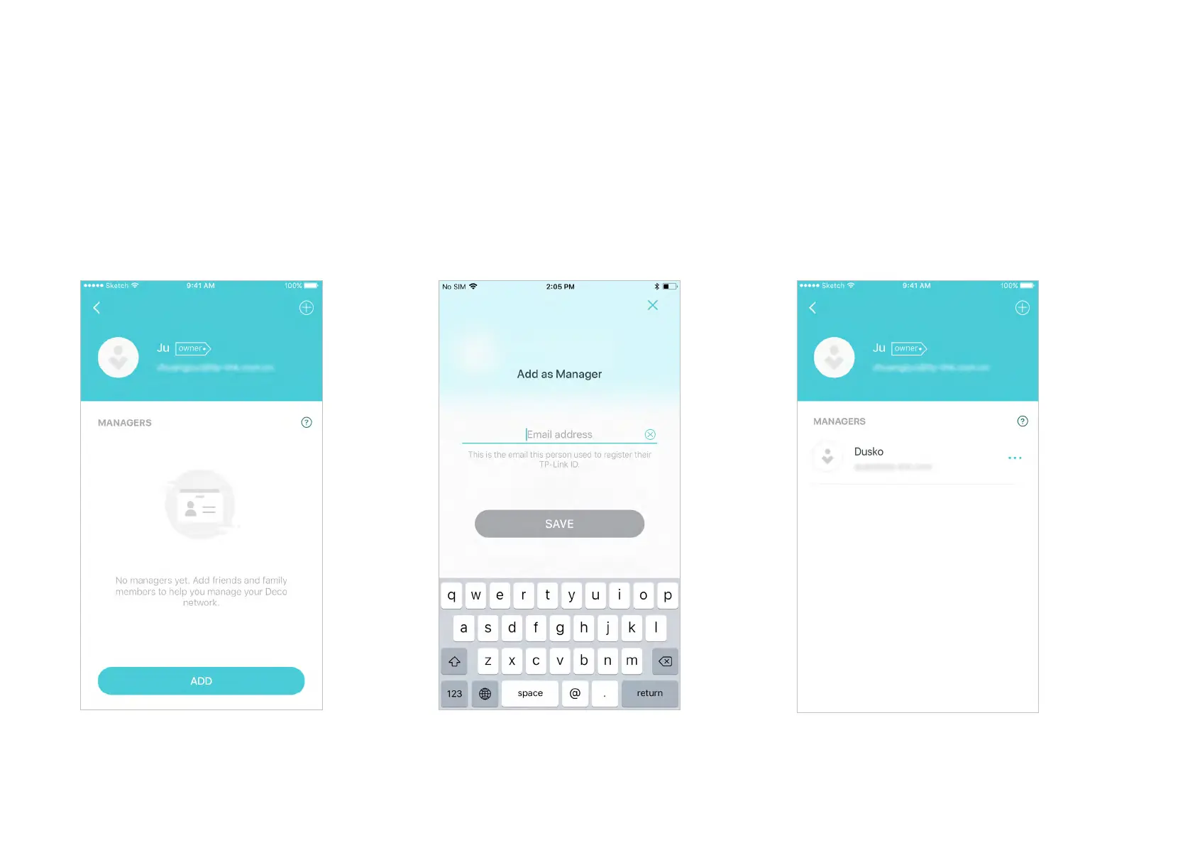 Add friends and family members to help manage your Deco network. Each manager should have their own TP-Link ID.