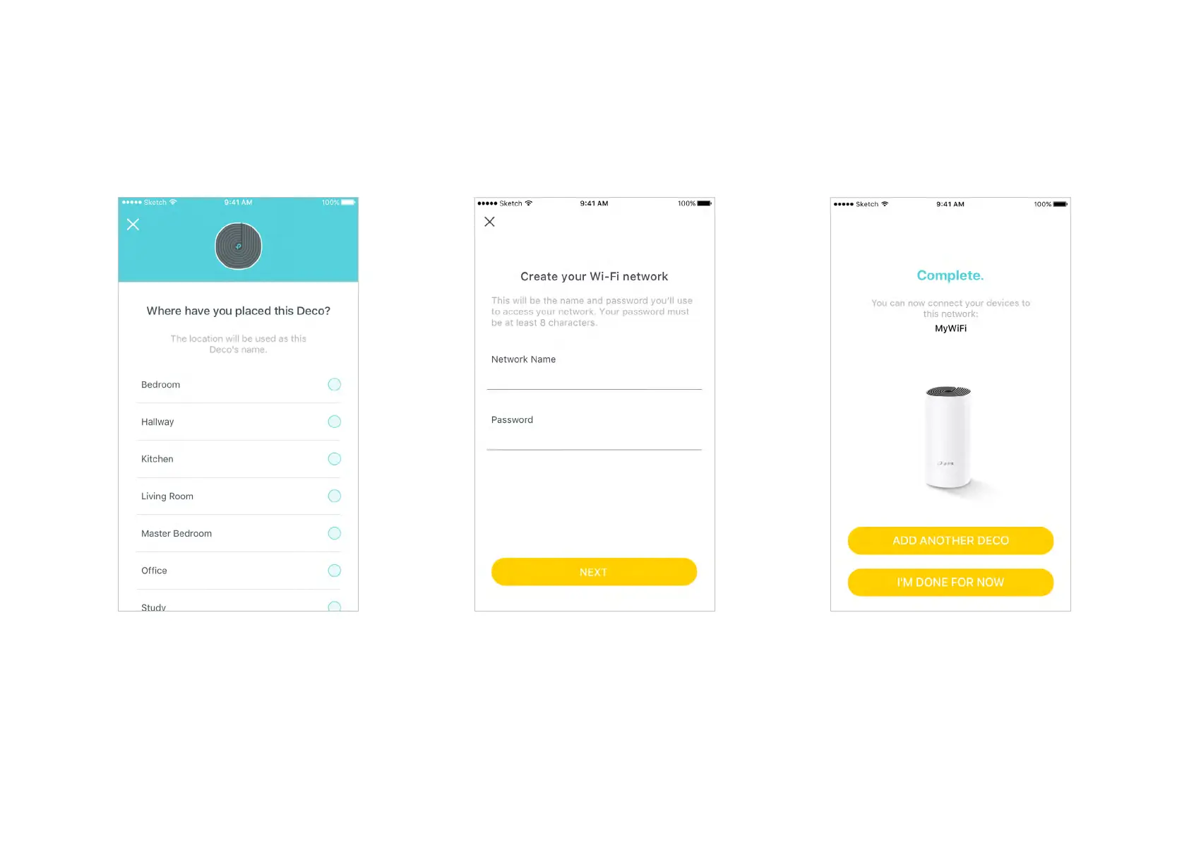 TP-Link Deco W2400 - Select Deco Location; Create Wi-Fi Network; Add More Decos