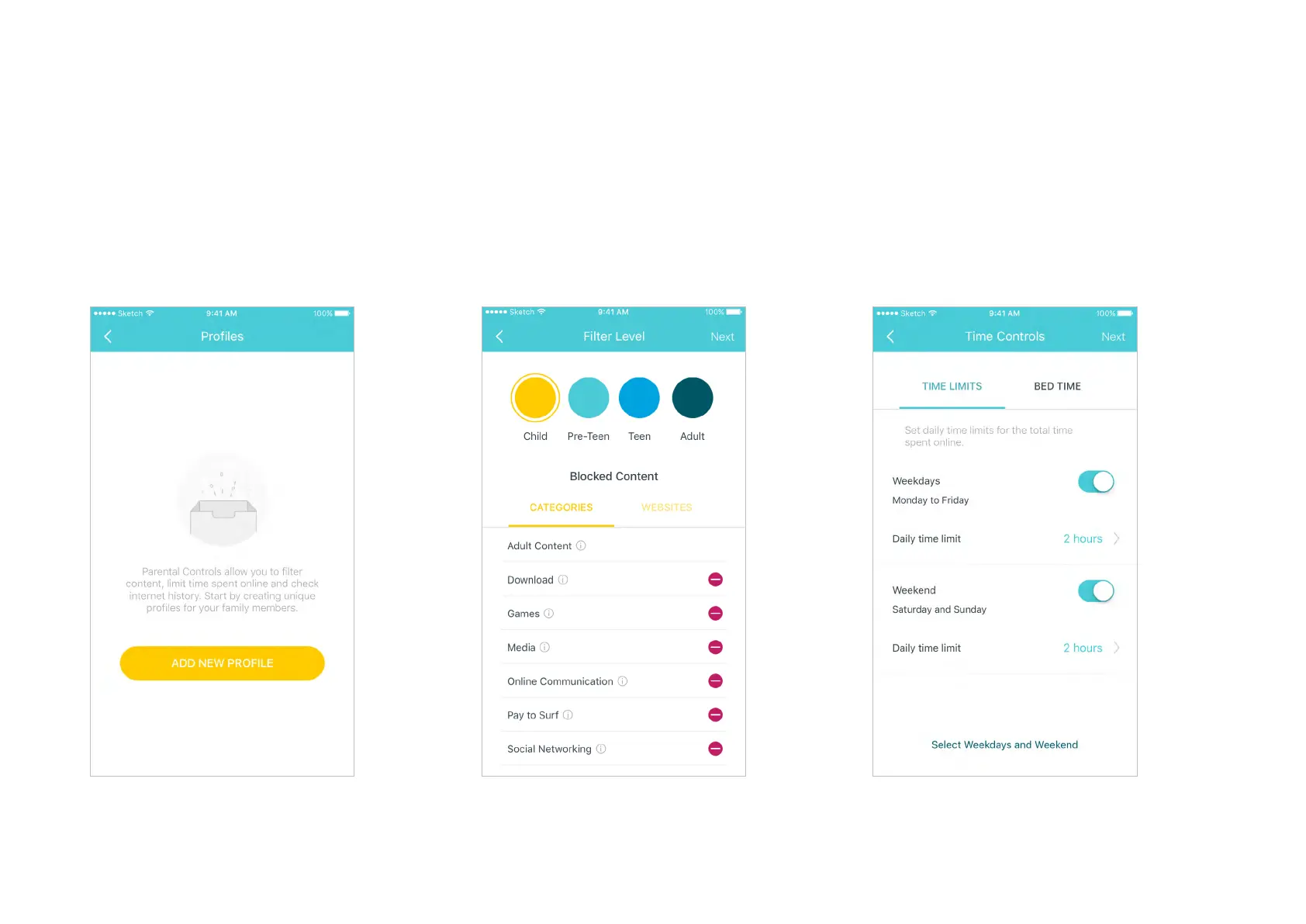 TP-Link Deco W2400 - Parental Controls Setup; Create User Profiles; Select Content Filter Level; Set Time Controls