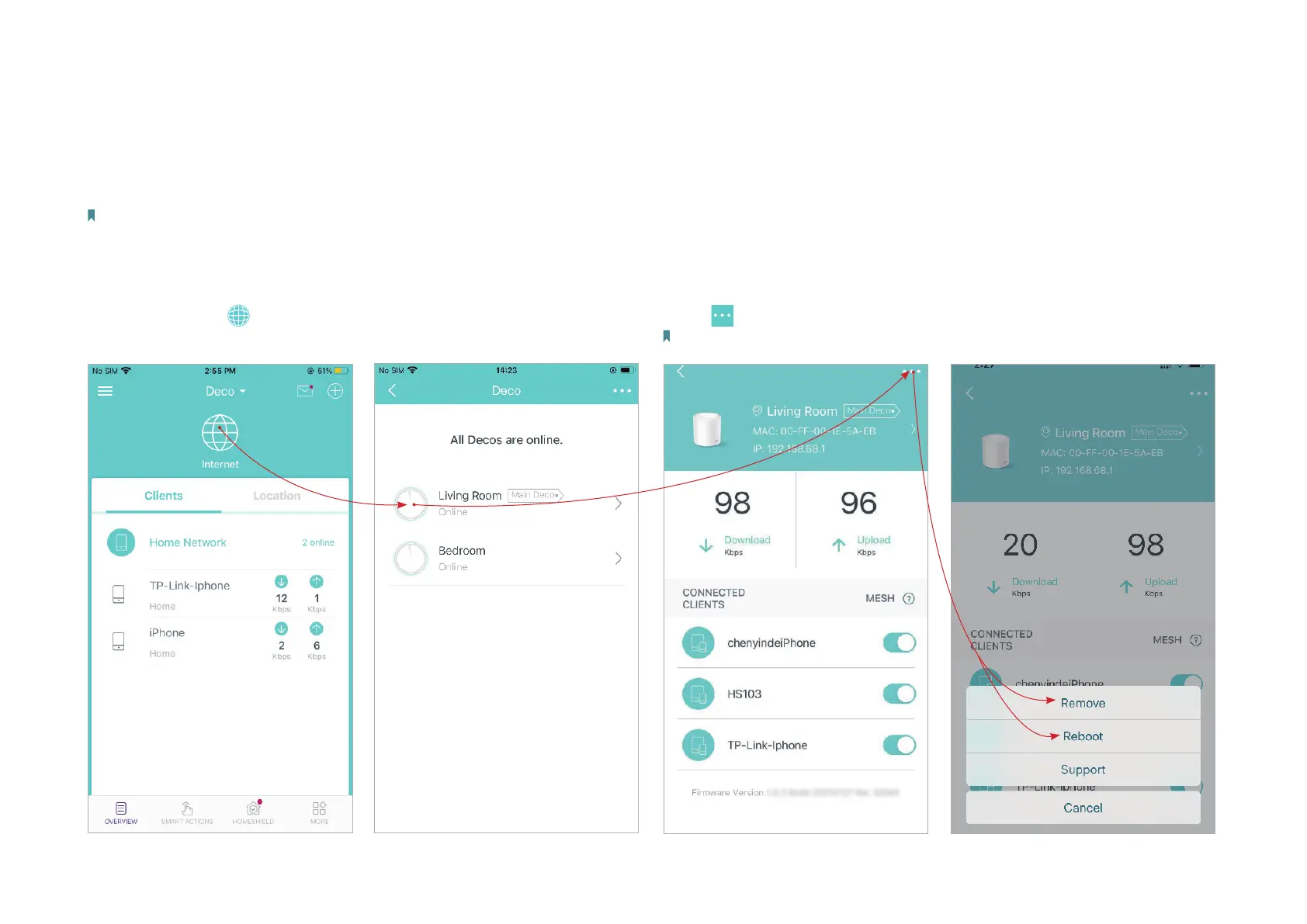 1. In Overview, tap . 3. Tap to remove or reboot the Deco.