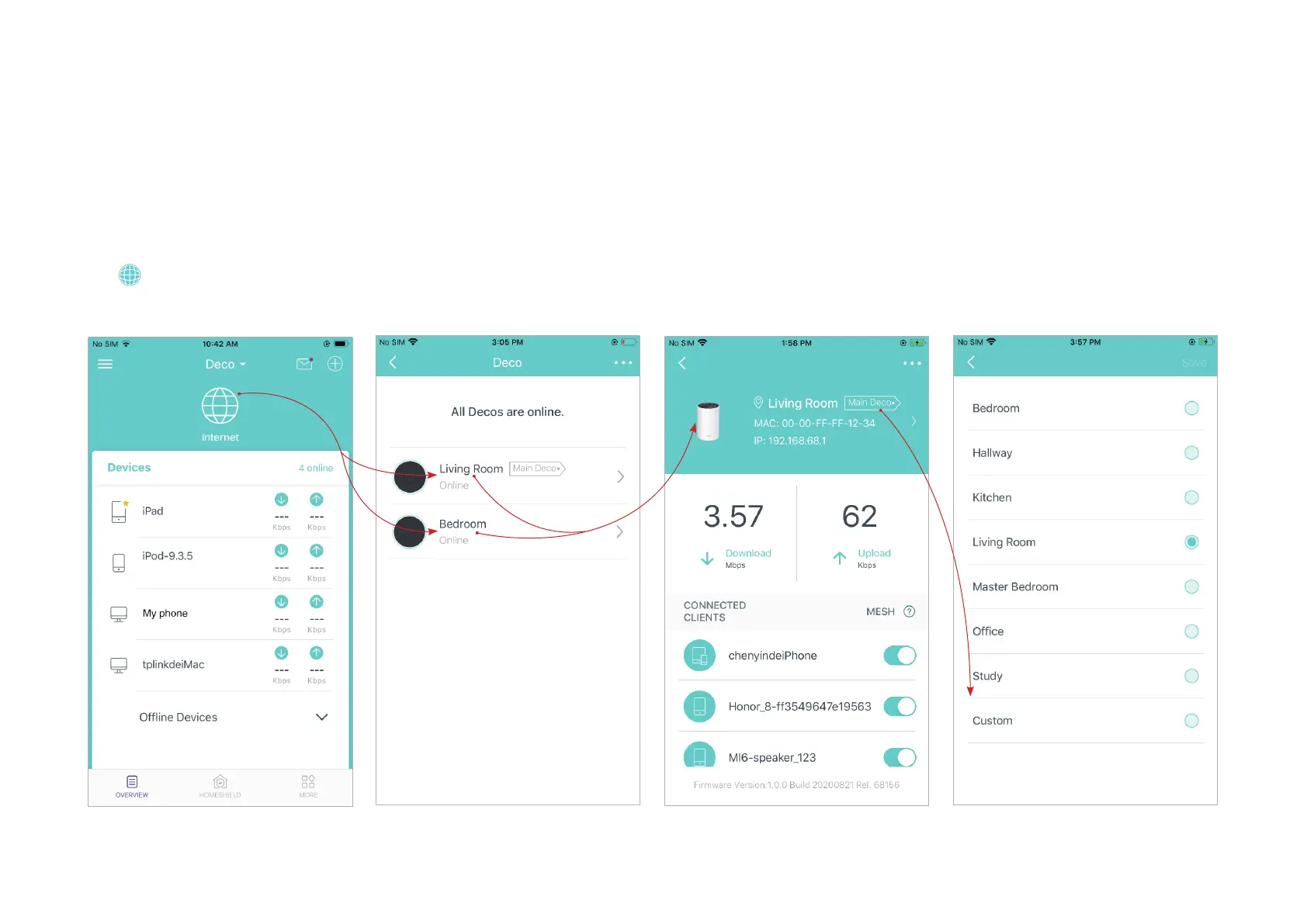 In the Overview page, you can check the working status of all the Decos, check the Deco details, change or customize the location, and more.