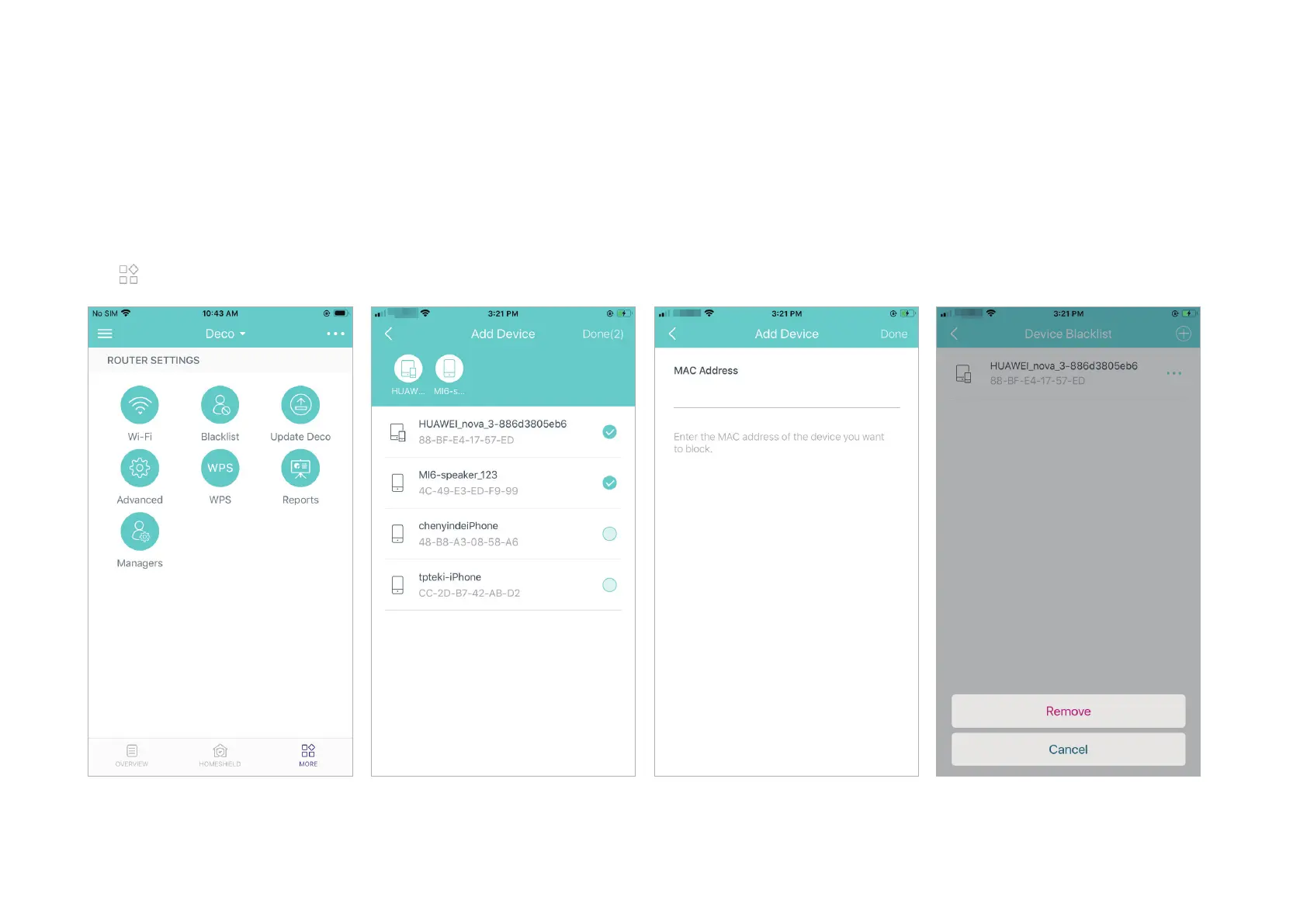 TP-Link deco W7200 - Blacklist; Add Clients to Blacklist; Add Other Devices to Blacklist; Manage Blacklist