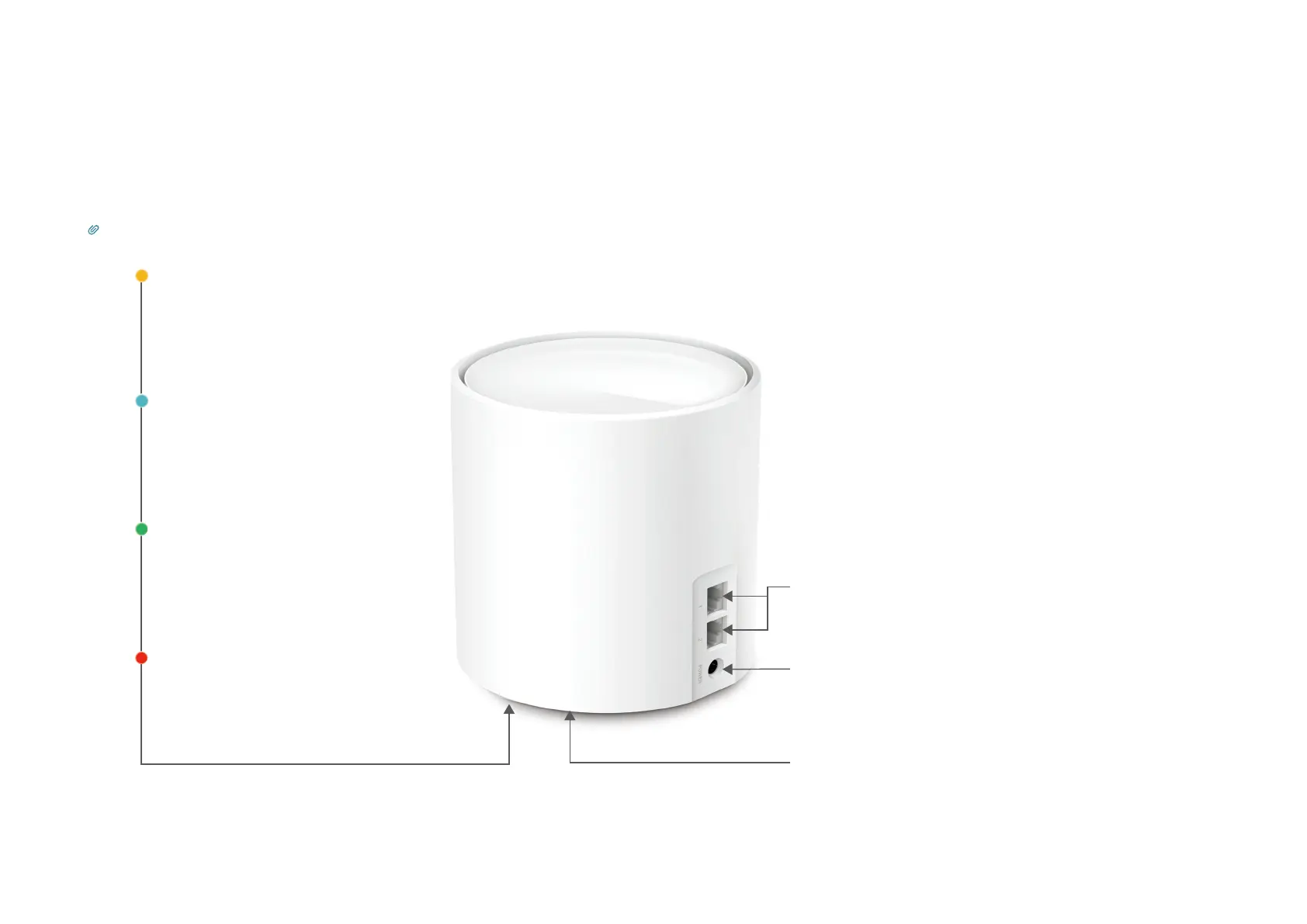 Each Deco has an LED that changes color according to its status, two RJ-45 Ethernet ports, a power slot, and a Reset button.