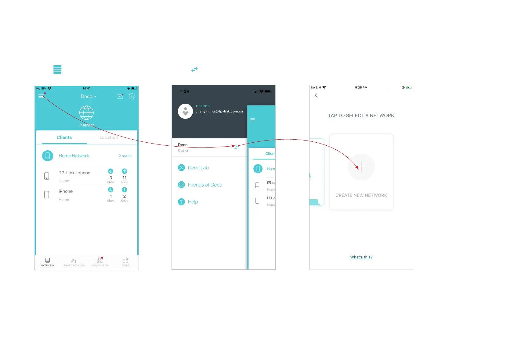 1. Tap to open the menu. 2. Tap > CREATE NEW NETWORK.