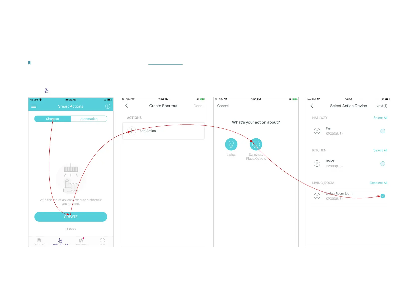 Shortcut lets you achieve an action with a simple tap. For example, if you want to power on your living room light at one tap, follow the steps below.