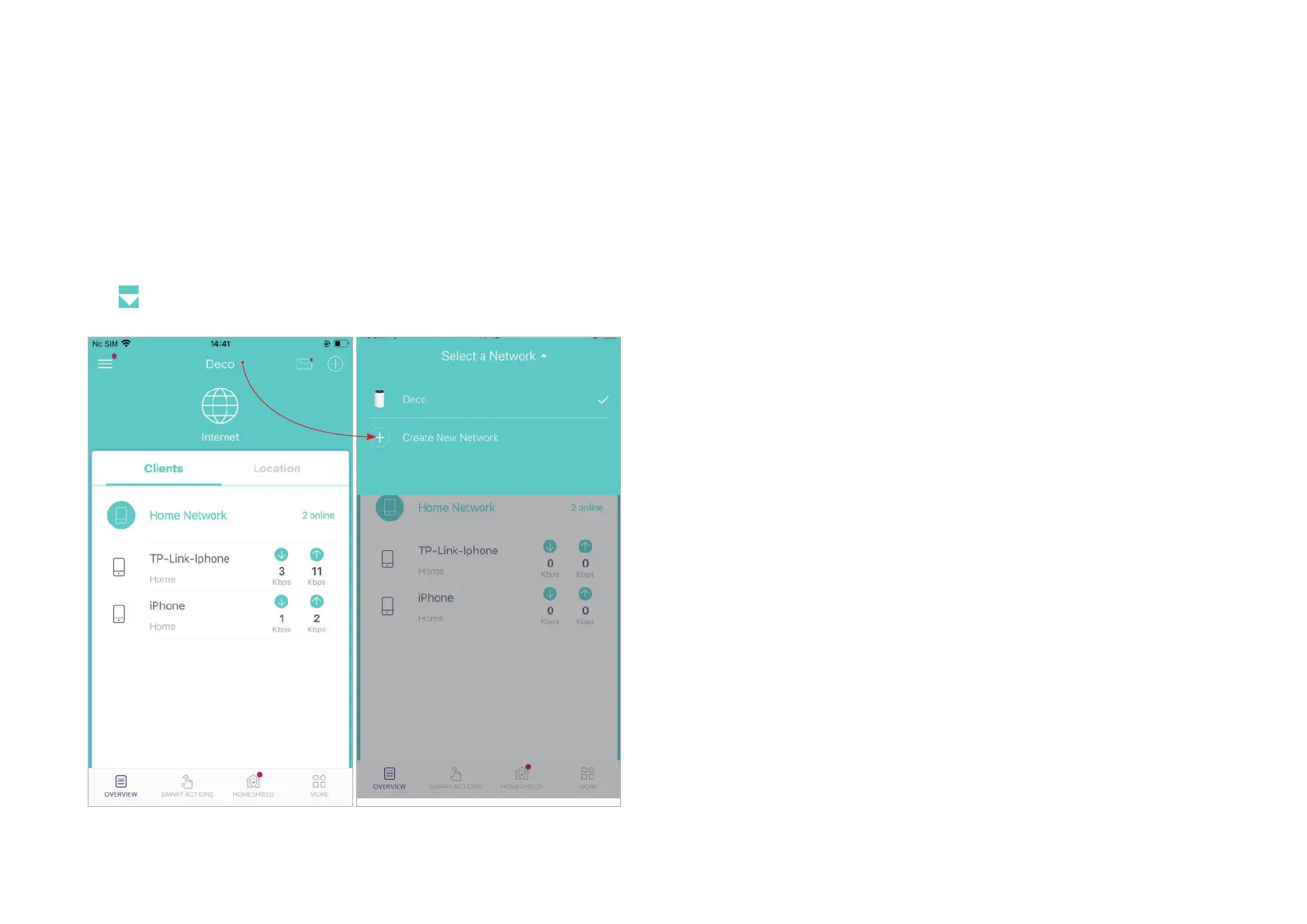 In the Deco app, you can create different Deco networks with your TP-Link ID and manage them conveniently from the Deco app with one account. You