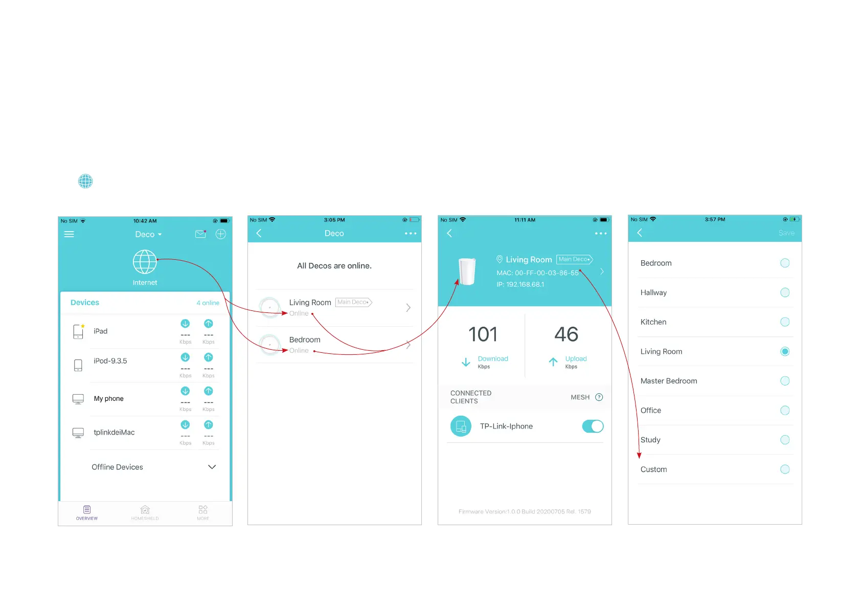 In the Overview page, you can check the working status of all the Decos, check the Deco details, change or custom the location, and more.